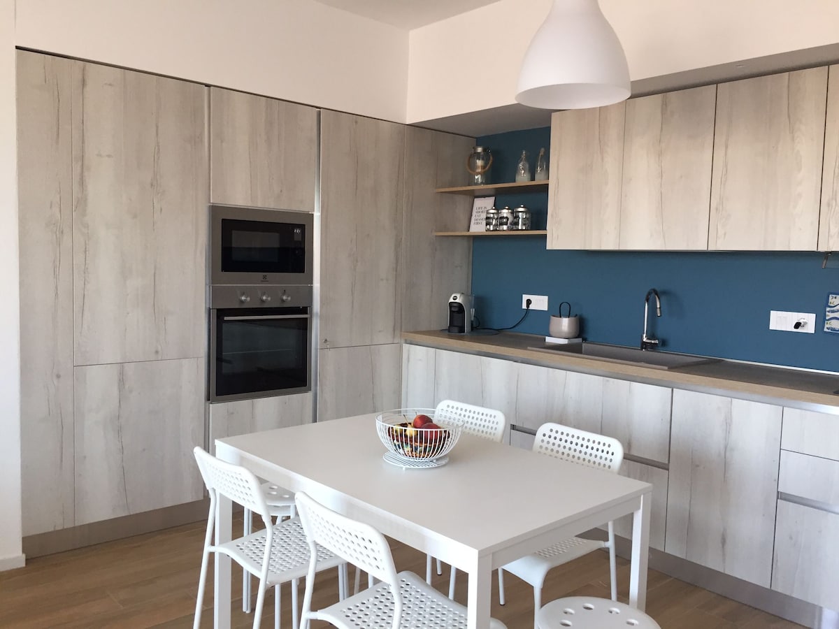 獨立公寓,新翻修,注重細節,配有兩間大型雙人房,配有全套設備的浴室;客廳配有智能平板電視、Wi-Fi連接、配有洗碗機、烤箱和微波爐的廚房;洗衣機、暖氣和空調。 公寓位於市中心,周圍有酒吧、餐廳、商店、廣場和教堂,距離最美麗的Sinis海灘僅幾分鐘路程。