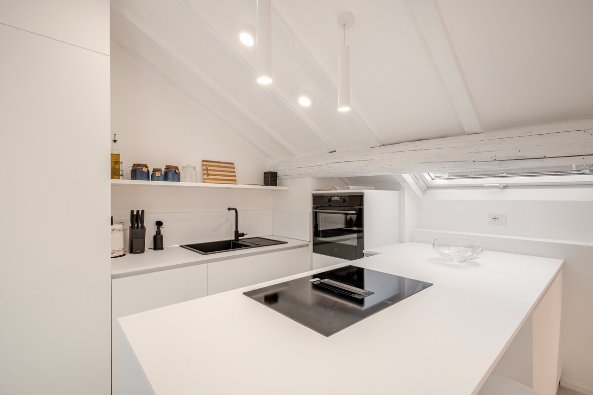 地理位置獨特,景觀優美,毗鄰布蘭達萊塔樓(Torre del Brandale),俯瞰碼頭。 俯瞰遊艇碼頭的海景。 歷史悠久的閣樓建築經過全新優雅翻修,散發著迷人的魅力和氛圍。 歷史中心屋頂的口袋露台。雙人臥室、設備齊全的廚房、配有雙人沙發床的客廳、帶淋浴的浴室。五樓,無電梯。冷暖空調。自助入住