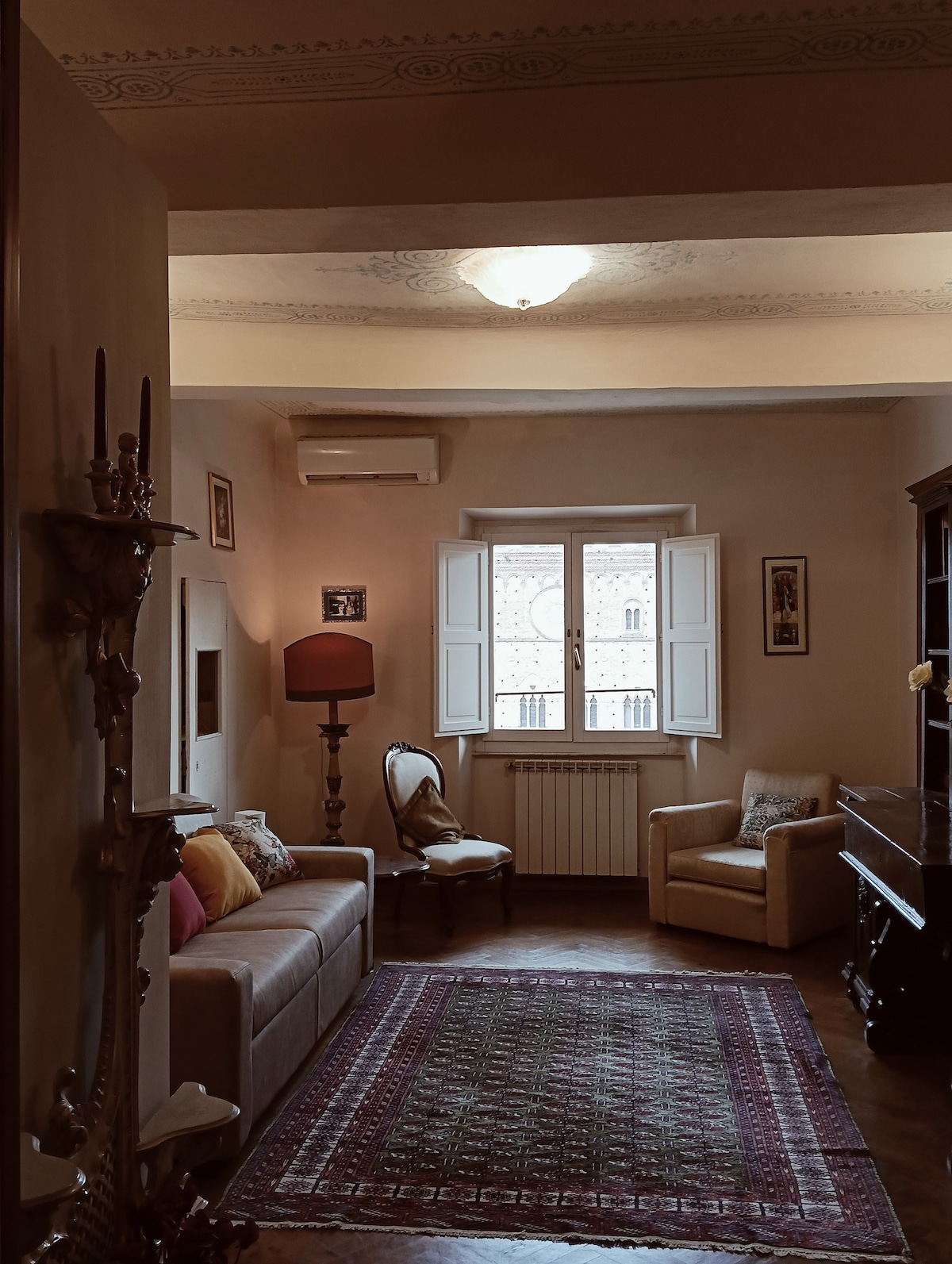 200平方米的公寓配有珍贵的古典家具和非常宽敞的客房: 13个窗户俯瞰着老城区,每个窗户都能欣赏到城市的独特景色。 宽敞宽敞的休息室,在Banchi di Sopra,Piazza Salimbeni广场和Monte dei Paschi的总部,由高贵的宫殿Tantucci,Salimbeni和Spannocchi组成。 第二个休息室与图书馆,沙发床和同样的独家景观。 2间带城市景观的大卧室和特大号床。 3间带按摩浴缸的浴室和1间带淋浴的浴室。 穿过公寓的长长的走廊,宽敞的入口和内部庭院的私人露台。 带沙发床和城市景观的第三间休息室。 餐厅享有锡耶纳大教堂和圣多米尼科大教堂的全景,在距离我们几米远的锡耶纳中世纪屋顶上脱颖而出。 设备齐全的厨房设有洗衣区。 它占据了我们1600年的宫殿的整个二楼,并提供锡耶纳及其建筑奇观的独特和特权。 我们在Banchi sopra Sopra,锡耶纳历史中心的主要路线,在房子下面,您会发现中心最好的商店,所有品牌的高级时装,很多餐馆;酒庄,酒吧和超级市场与典型的托斯卡纳产品。