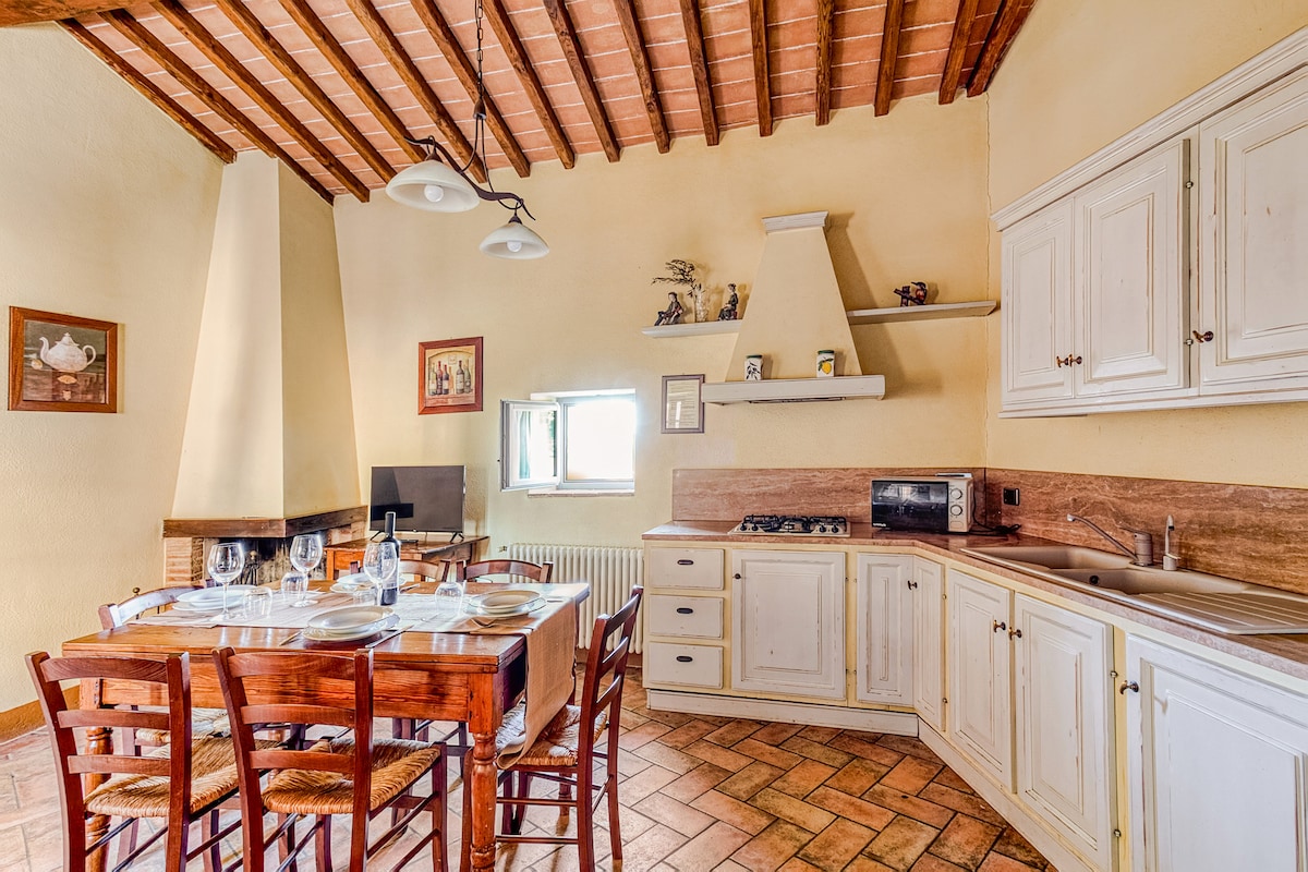 由於塔樓獨特的建築,我們更大的套房可360度俯瞰Val d 'Orcia。 設備齊全的廚房位於二樓。從這裡出發,一個美麗的赤陶樓梯,沒有任何變化,外露的石牆通往三樓,在那裡您可以找到臥室和浴室。