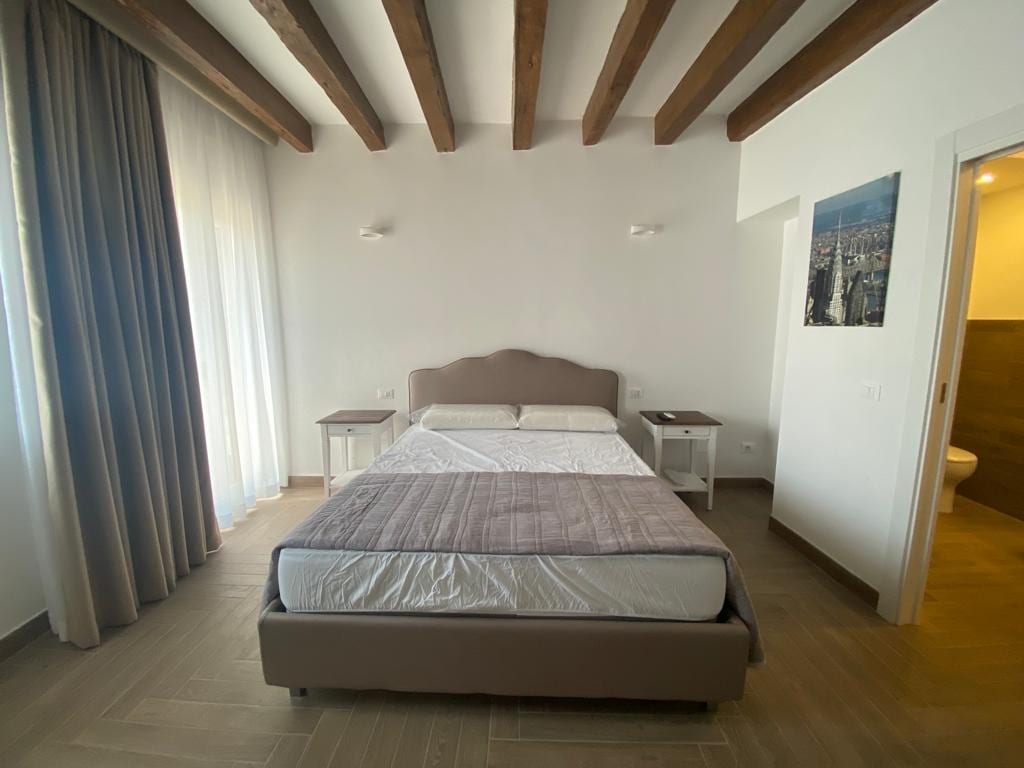 兩層家庭套房可供4人入住,提供舒適和設計的獨家住宿。 優雅的套房,配有兩間獨立臥室、帶浴缸和維特里陶瓷的浴室、帶沙發的起居區、餐桌、智慧電視和帶碗架的水槽角落。 配有大型定制衣櫃、雙空調和雙入口。 隔音窗戶和兩個陽臺俯瞰安靜的街道。