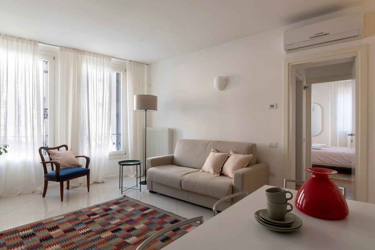 公寓由寬敞的起居區域、廚房和客廳、雙人臥室和浴室組成。 客廳的沙發可以變成一張雙人牀。 位於歷史中心,乘火車幾分鐘即可抵達威尼斯。 公寓配備了所有舒適設施,適合您的假期或那些不得不留在市區工作的人。 步行1分鐘即可抵達大教堂廣場 每位房客每天4歐元的旅遊稅在線上支付