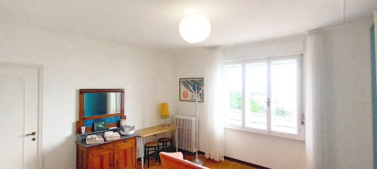 一個70平方米的華麗閣樓,迎接您來到一個可以俯瞰大海和城市的玻璃大廳。私密且安靜,它有一個獨立的雙人臥室和一個雙人沙發床,最多可容納4人。廚房配備了各種設施:洗碗機、微波爐、Illycaffé咖啡機、洗衣機。朝南,海景反射,為房子帶來溫暖和諧的光線,夏天的空調讓您安然入睡。 停車位和露臺,可俯瞰大海和城市。獨一無二!