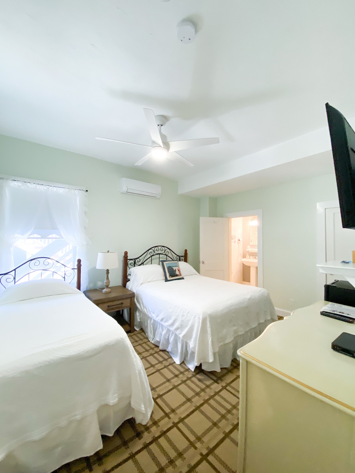 我們歷史悠久的套房每扇窗戶都能欣賞到海景。 一間臥室可容納一張加大雙人牀,第二間臥室可容納一張加大雙人牀。 這個完美的私人度假勝地是共用浴室和公共客廳。 此套房不適用於ADA。 設施包括: 110-120伏電路、智慧電視、吹風機、空調和免費WiFi。 客房配置可能會因可訂狀況而異。 請聯絡前臺,確認您預訂房間的實際佈局。