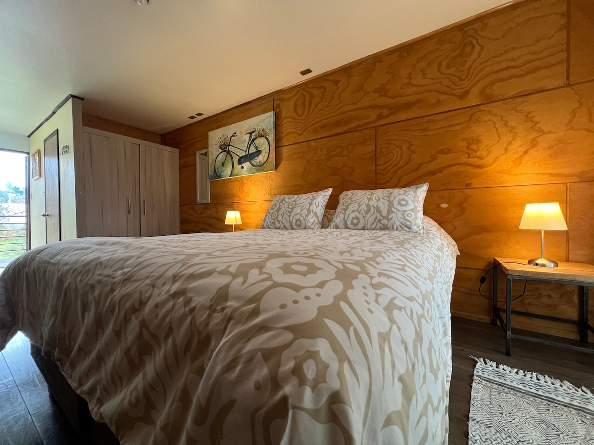 ¿Qué incluye? ° Cama matrimonial ° Baño privado ° Cocina equipada compartida ° Calefacción ° Toallas, papel higiénico, secador de pelo Nuestro alojamiento se ubica a 5 min. del centro de Pucón con acceso directo a ciclo vía y locomoción colectiva, además, cuentas con; estacionamiento, Wifi y calefacción. Beneficios Adicionales • Acceso a terrazas y áreas comunes • 50% de descuento en Mini Golf Pucón • Somos Pet Friendly (tarifa aparte)