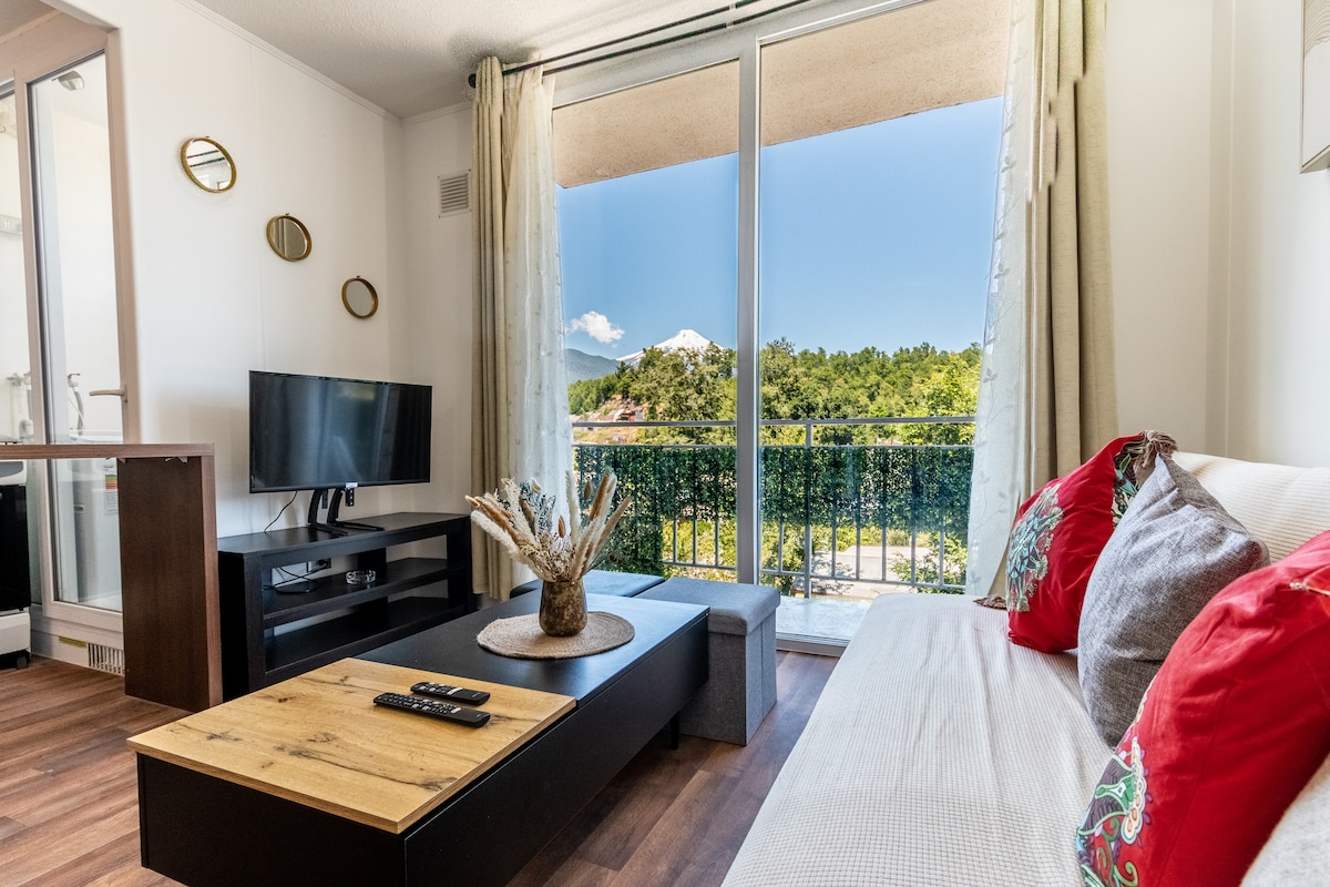 來普孔享受獨特的體驗。 這間 1 間臥室、1 間浴室的公寓,設有寬敞的露臺,可欣賞維拉里卡火山的壯觀景色,非常適合放鬆身心。 配有高速WiFi和智慧電視,讓您不會錯過最喜愛的影集或電影。 理想位置:靠近餐廳、湖泊、溫泉和戶外活動。 開車或Uber只需5分鐘,或步行1公里即可抵達市中心。