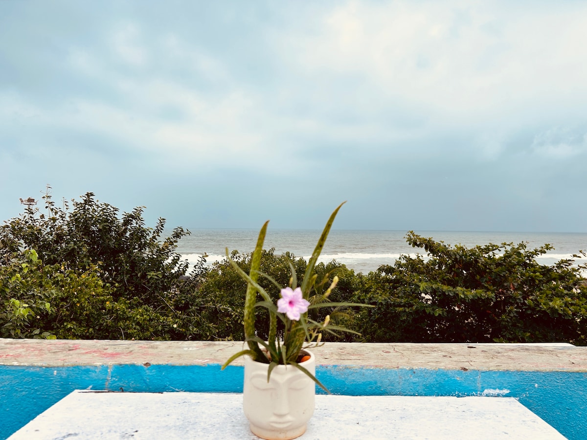 感謝您考慮我們舒適的500平方英尺海濱度假勝地,非常適合情侶或小團體。 此空間可舒適容納最多5位房客,設有兩間配備空調的臥室,客廳還有一張單人床。 設備齊全的廚房、浴室和Wi-Fi。 屋頂提供加大雙人床,可欣賞部分海景和露天設計,營造清新放鬆的海岸體驗。 請注意,我們會收取 Rs.4,000/- 的可退還押金