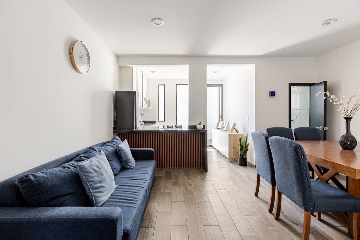 享受現代化舒適的空間。 公寓提供安靜的氛圍,讓您在普埃布拉住宿愉快。 俯瞰火山的私人露台非常適合在早晨喝咖啡或在下午放鬆。 地理位置極佳,可快速抵達主要大道,非常靠近購物中心、餐廳和旅遊景點。 無論是短期度假還是長期住宿,這都是了解這座城市的絕佳選擇。