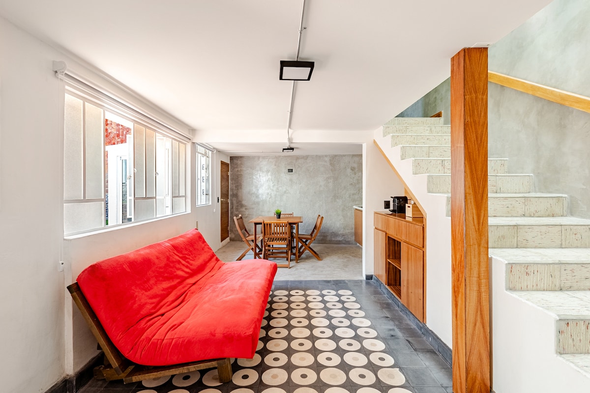 工業風格的閣樓式公寓。享受您在全新現代化公寓的住宿體驗,享有極佳的設施和非凡的地理位置。 - 我們提供所有必要的設施,讓您的住宿更加愉快。空調、高速 Wi-Fi、可觀看串流平台的智慧電視等。 - 享受華雷斯大道 (Av. Juárez) 和帕斯山 (Cerro de la Paz) 附近的各式餐廳、酒吧和景點。華雷斯大道和和平山僅幾分鐘路程。