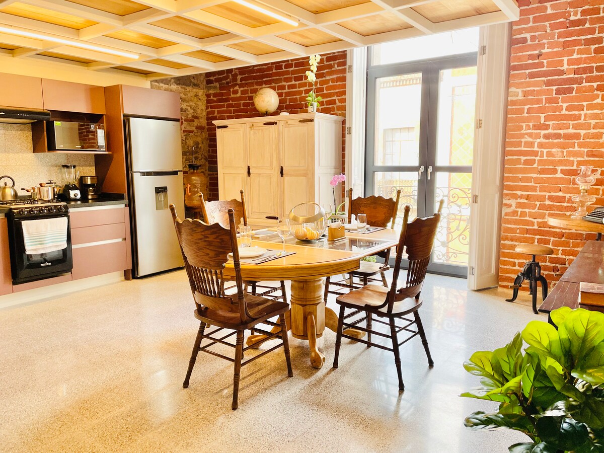 美麗的公寓,坐落在17世紀的房屋中,裝修精美,地理位置完美,位於市中心著名的Callejón de los Sapos,是市中心最受歡迎的街道,步行僅需5分鐘即可抵達Zócalo和普埃布拉大教堂,您將被餐廳、咖啡館、酒吧、工藝品和古董店所包圍。