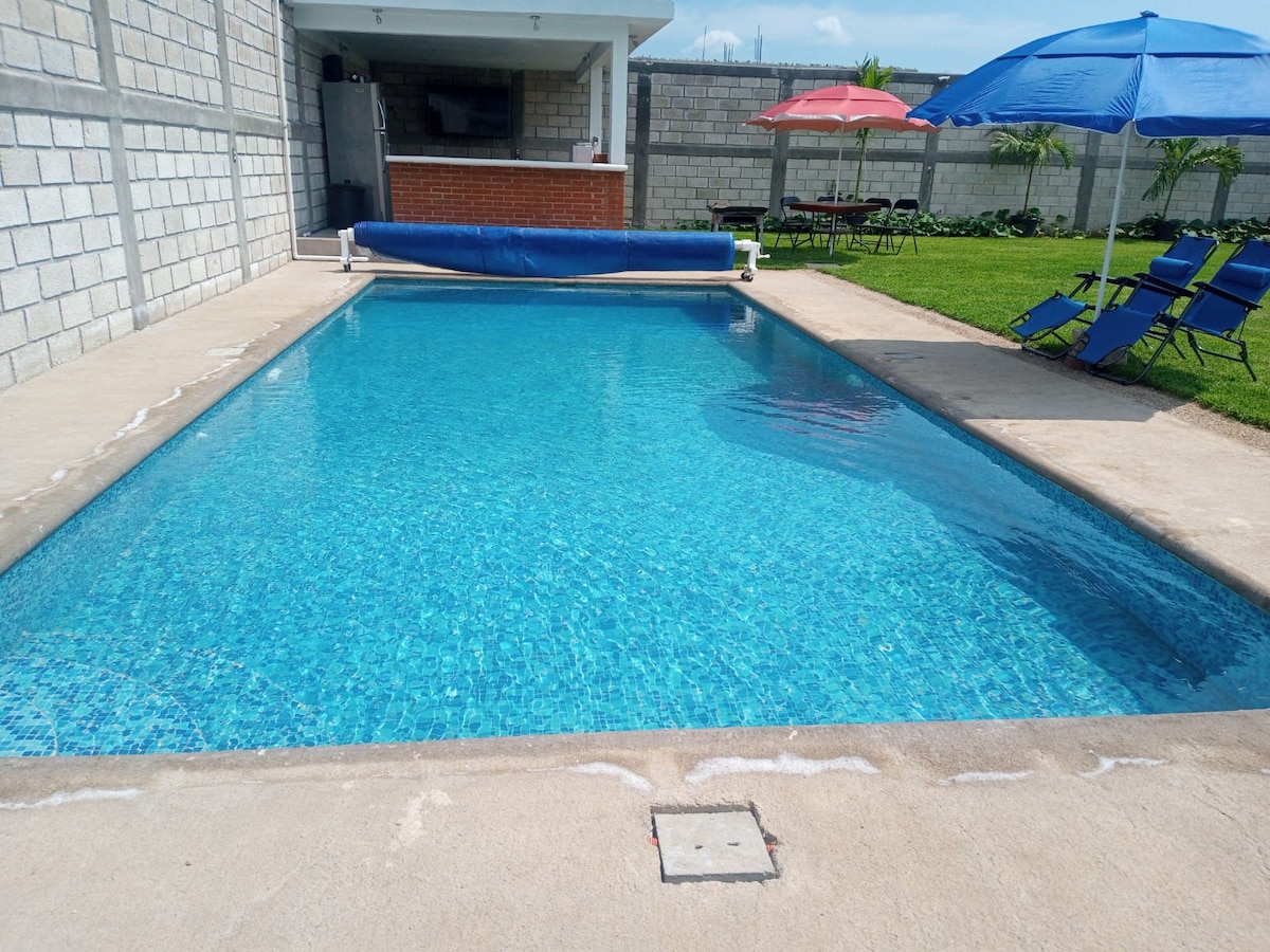 Toda la familia y amigos en este fantástico lugar, puedes vivir la experiencia de acampar con todos los servicios y seguridad de un hotel. Elige: montas las casas de campaña o te entregamos todo montado para que disfutes 100% cada momento. La casa de campaña va con los colchones, sábanas, cobijas, almohadas, toallas, somos glamping. El lugar es privado para ti, familia, invitados y tus mascotas. Tiene albercar, asador, refri, sala de estar , preguntamos por que más...