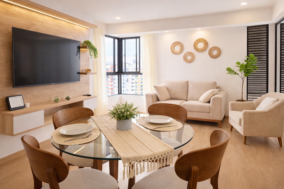 現代化的全套公寓,非常適合長期住宿。 配備Netflix和Disney +的65吋智慧電視、高速WiFi、設備齊全的廚房、咖啡機、室內洗衣房、標準雙人床、熱水和街景陽臺。 大樓提供泳池、健身房、共享工作空間、24 小時自助入住、停車位和保全。 免費咖啡和餅乾!