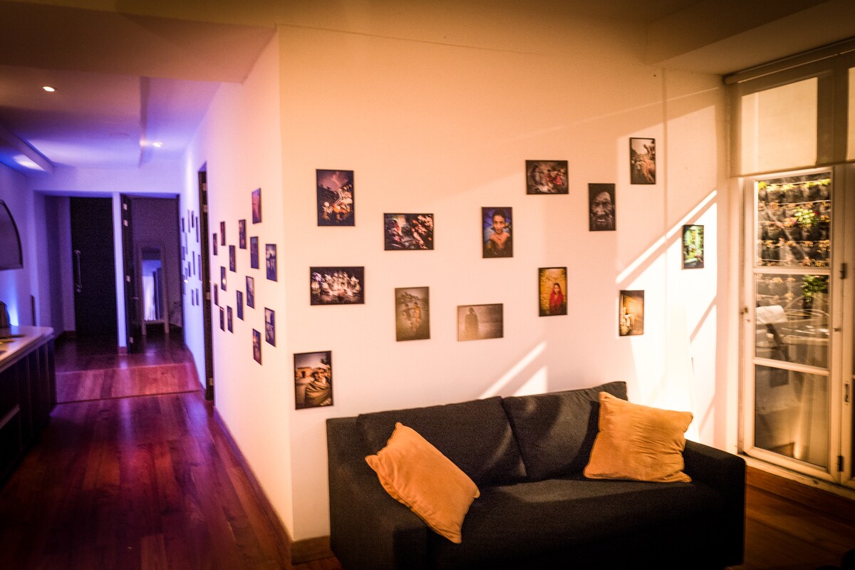 豪華一間臥室,位於波哥大(奇科)最獨特/安全的區域,步行即可抵達最好的餐廳、購物中心,靠近許多商家。 行政住宿,配有專屬工作空間、私人露臺、自動壁爐、可靠的WiFi、私人停車位和大樓保安。 設備與服務:享受美麗的全景露臺,配有壁爐和戶外烤架。 您也可以在桑拿房或蒸汽房玩壁球和放鬆。