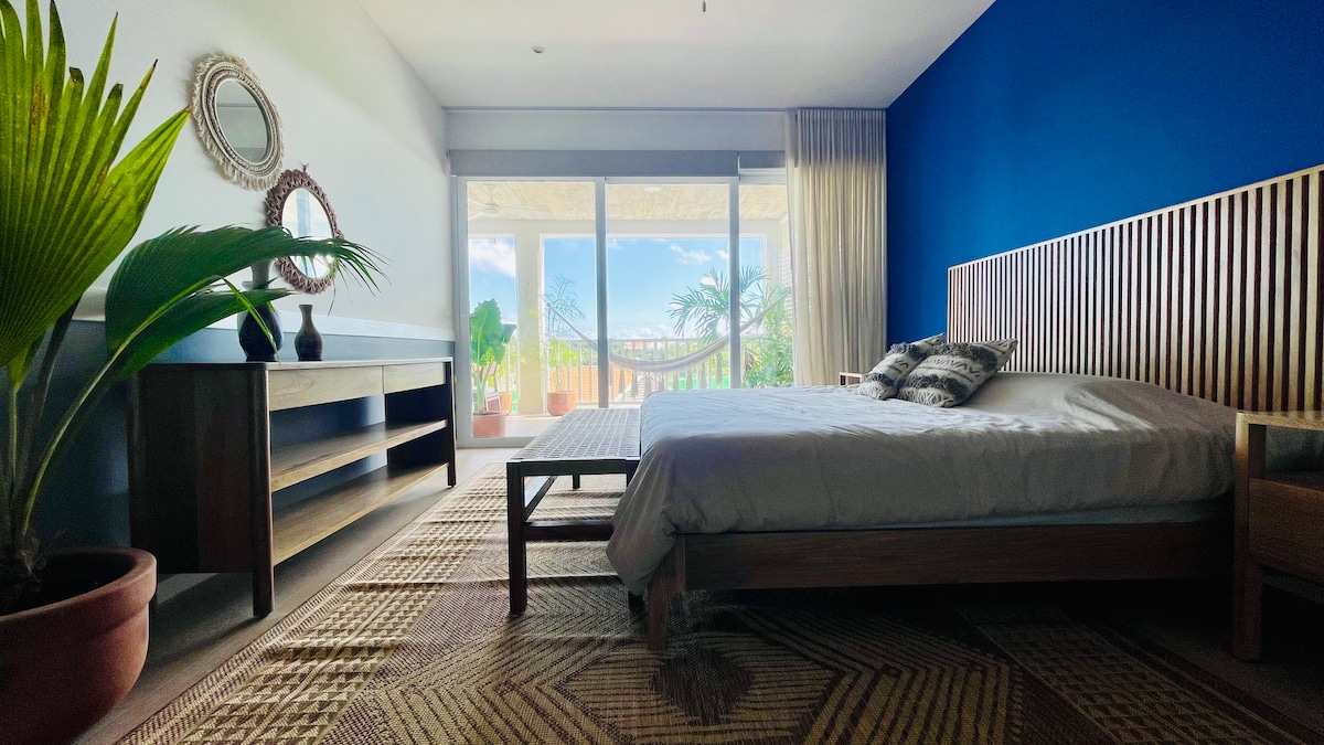 這間豪華的頂層公寓套房可俯瞰潟湖和加勒比海的壯麗景色。 加大雙人牀,配有高線數牀單、迷你冰箱、咖啡服務、微波爐和私人屋頂泳池! 阿文圖拉斯港( Puerto Aventuras )最好的隱藏地點之一。 從潟湖到海邊劃皮劃艇或槳板,或在美麗的公共區域享受私人潟湖海灘和泳池。 步行即可抵達該地區最優秀的海灘之一! 放鬆身心,享受這個浪漫的空間。