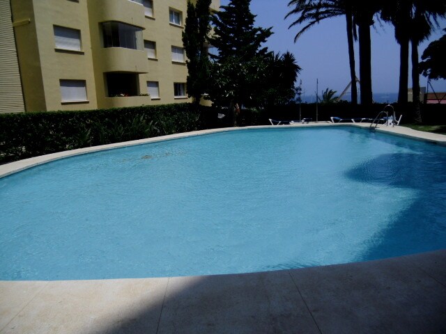 Cozy, bright, entirely renovated quality flat on the front line with sea views from the sunny and large balcony, both rooms and the bathroom. Features his and her shower, full kitchen, 2 tennis courts, 2 swimming pools (1 for children) large gardens, private beach area, free beach beds and private parking. We have a sandy beach with Blue Flag status and direct access to the sea boardwalk. Near Marbella and La Cala with 75+ restaurants and many shops walking distance. Strict cleaning in effect.