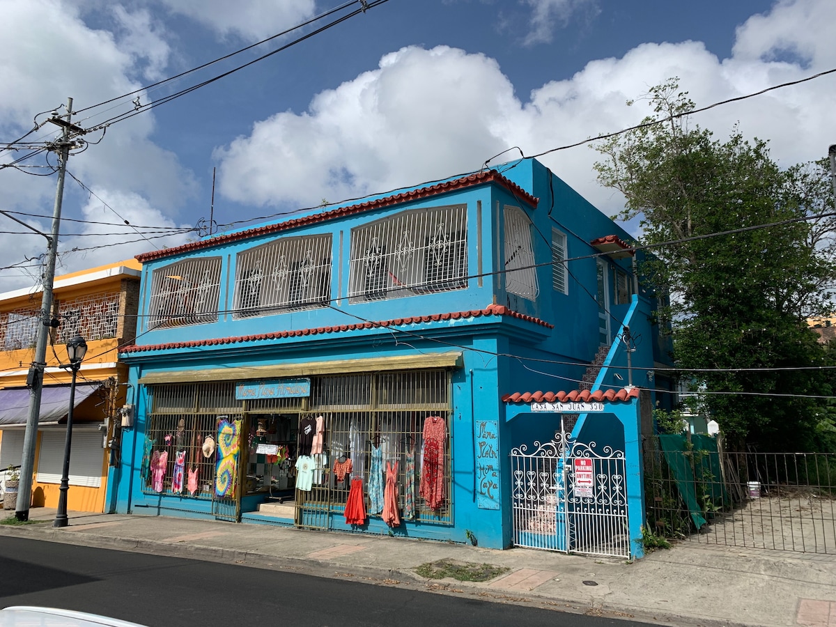 在這個位於市中心的地方享受時尚的體驗。 位於別克斯市中心的美麗維護良好的房子。 別克斯島最好的地點之一。 步行8分鐘即可抵達渡輪碼頭。 La Viequense麵包店和踏板車可供出租。 步行即可抵達海玻璃海灘、餐廳、市場、市場和藥店。 獨立臥室,共用浴室、餐廳、客廳、客廳和寬敞的陽臺。 浴室與另外一間房間共用。