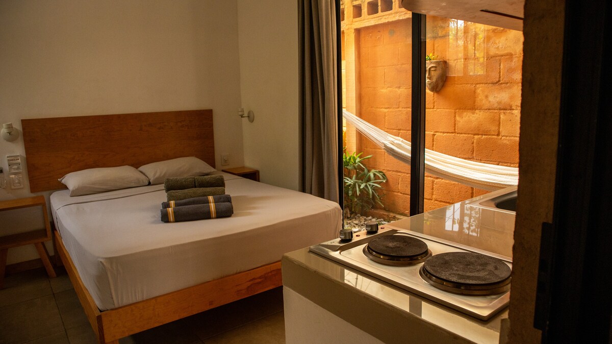(說英語!) 🫡 套房具有正宗的墨西哥工藝品味,其 Adobe 建築非常清新且溫暖! 位於埃斯孔迪多港最安全、最安靜的地區之一。 非常適合獨遊或情侶! -獨立入口、露臺和浴室。 - 免費 WiFi 和電視服務。 -空調和吊扇 - 迷你、微波爐 步行約 7 分鐘即可抵達巴科喬海灘 (Playa Bacocho),步行約 15 分鐘即可抵達曼薩尼約海灘 (Playa Manzanillo)、卡里薩利約海灘 (Carrizalillo) 和安吉利托海灘 (Angelito)。