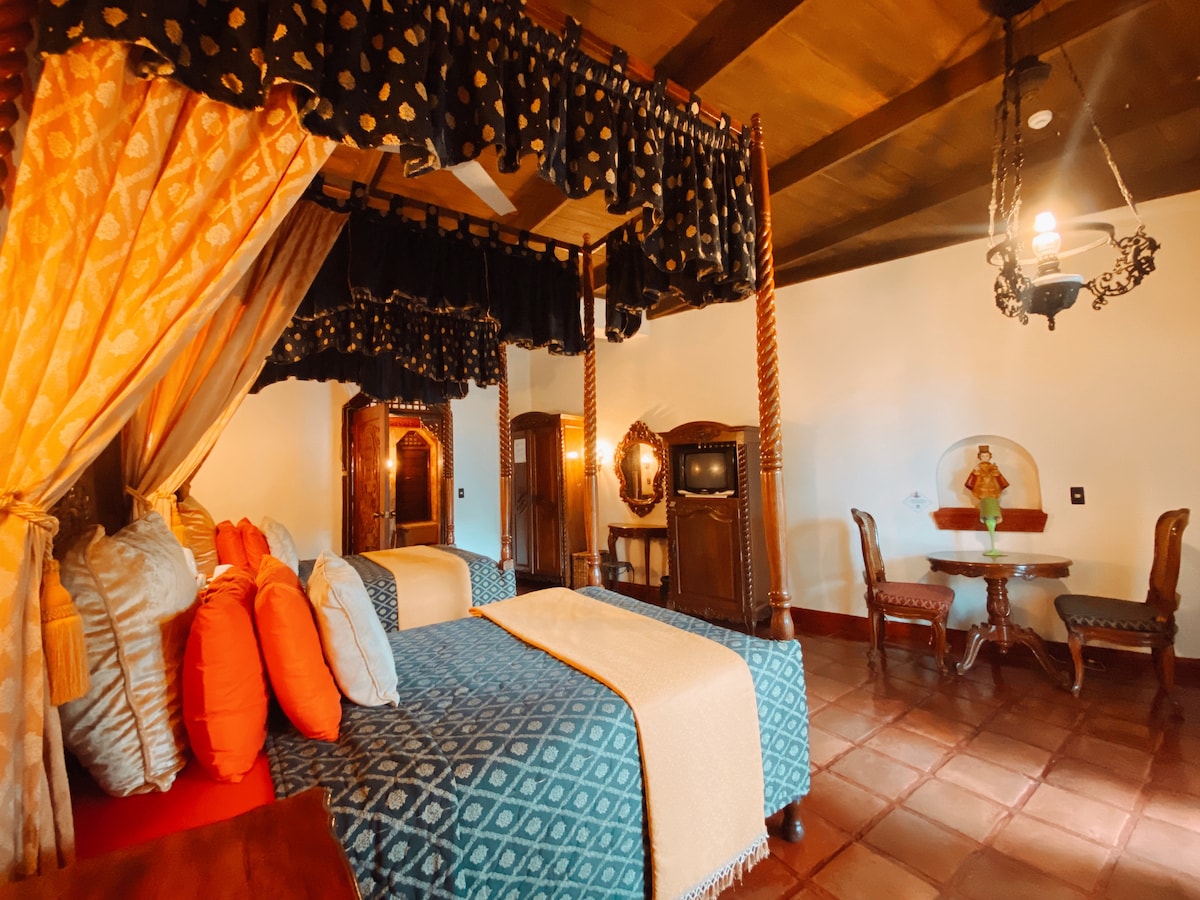 Ideal for travelers seeking ample space, this room features a King-sized bed, air conditioning, a 32" TV, safe box for your valuables, and a serene French-style terrace. Enjoy complete bath amenities, a mini refrigerator, and an unforgettable stay. To top it all, everything comes with a FREE BREAKFAST!