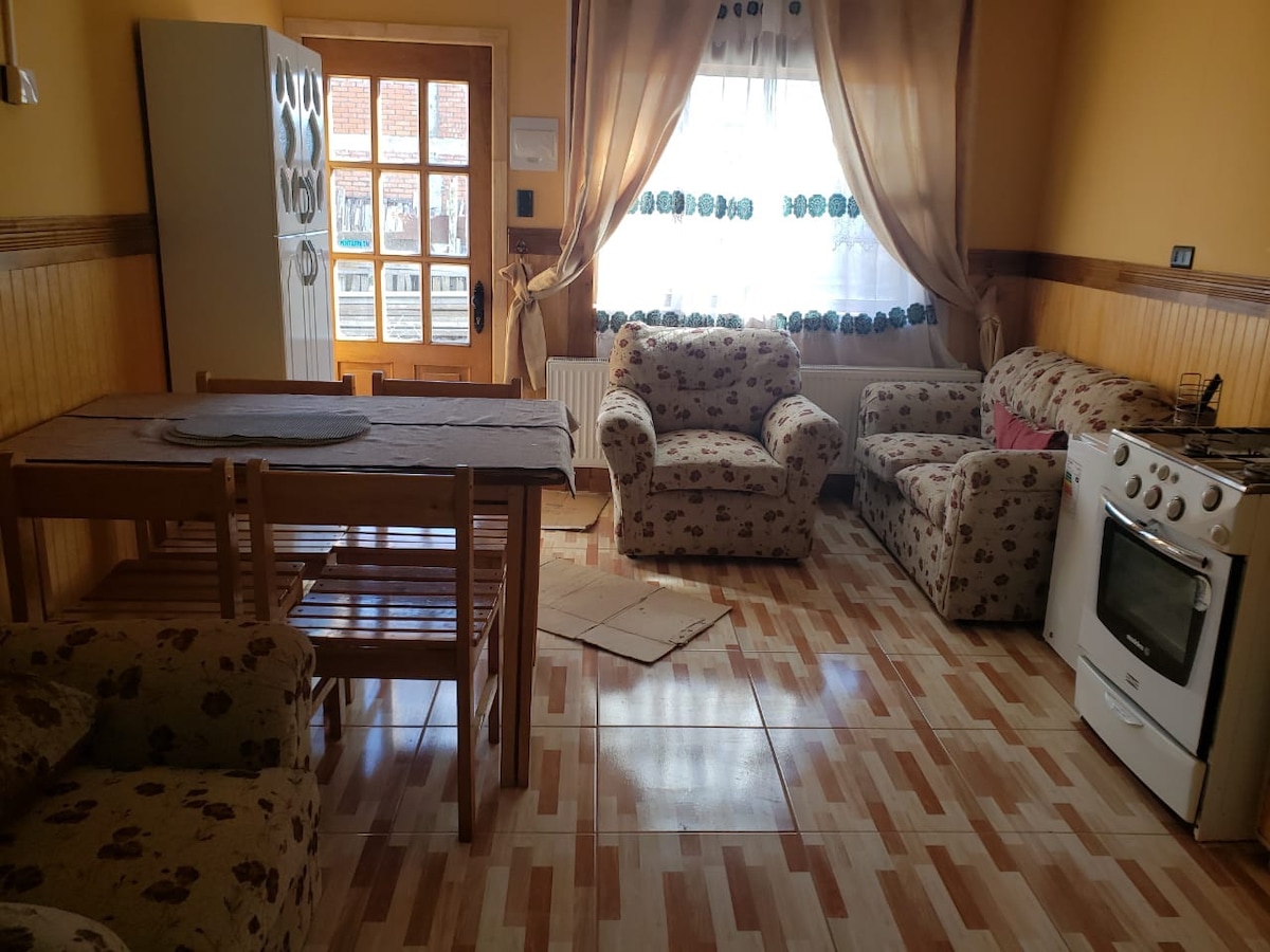可供3人入住的舒適空間,配有雙人床和1.5人床、廚房配備準備食物所需的一切設備、設備齊全的浴室,包括洗衣機、烘乾機、淋浴間、吹風機等。 為了您的娛樂,它有卡片、桌遊、資訊和旅遊書籍、帶串流應用程式的智慧電視,以及小木屋的其他Wi-Fi。 距離市中心10分鐘路程,距離巴士站兩個街區。