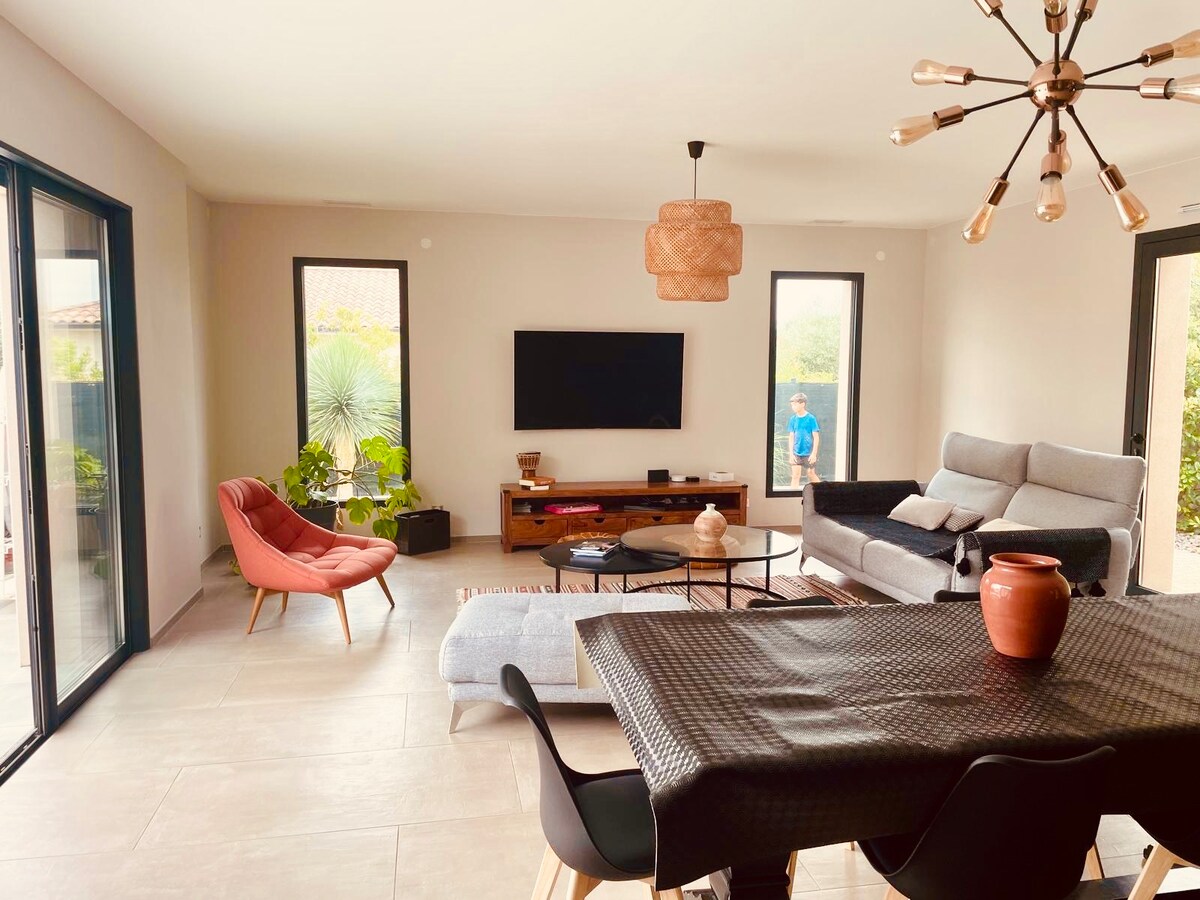 歡迎來到我們位於步行小巷的迷人小屋,非常適合情侶、家庭或一群好友安靜度假。 這個小小的寧靜天堂距離Beziers僅10分鐘,距離地中海海灘25分鐘,為您提供舒適、私密和放鬆的氛圍 🌿 您會發現一間配有雙人床的臥室,以及一張適合一兩個小孩睡覺的沙發床(120 X 175)。