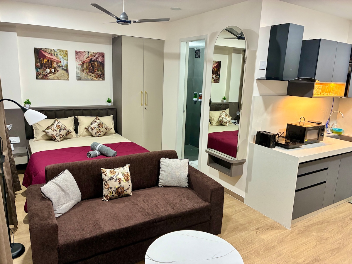 歡迎來到Kuteeram - 您的第二個家!這間時尚的 1 臥室公寓位置完美,擁有令人驚嘆的天際線景觀和現代舒適。無論您是出於商務或休閒目的來到這裡,我們的公寓都能完美融合寧靜與便利。 您可以步行前往商場,享受娛樂、美食和購物選擇。我們的公寓以您的舒適性為考量,提供安靜的家居住宿。 立即預訂,體驗最佳的城市生活!