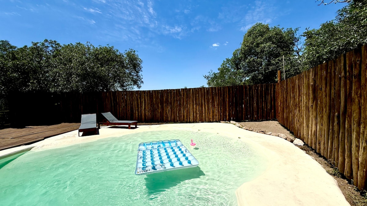 距離庫庫 (Cucú) 6 分鐘路程,您將沉浸在一座石屋中,可通往 Los Chorrillos 河和湖泊。全新單位,配備所有高級設施、空調、電磁爐、智慧玻璃、SUP、巨大的戶外按摩浴池。 它位於一個3500公尺的物業上,您只與兩個離房子很遠的帳篷共用。非常適合想在大自然中享受獨特時刻,但又想靠近一切的情侶。我是超級房東,查看評論。這是魔法!