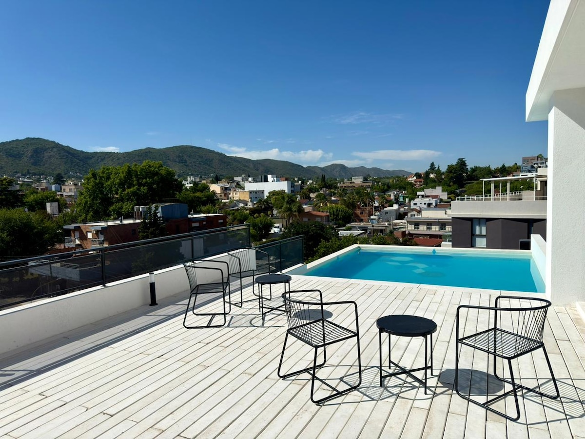 入住這間位於市中心的房源,享受時尚體驗。 位於高級建築物的優雅公寓– Downtown Villa Carlos Paz 我在Villa Carlos Paz市中心享受舒適、現代化和設備齊全的體驗。 這間公寓結合了優雅的設計、技術、舒適和完美的位置,非常適合尋找品質和安靜的情侶和家庭。 設備齊全。