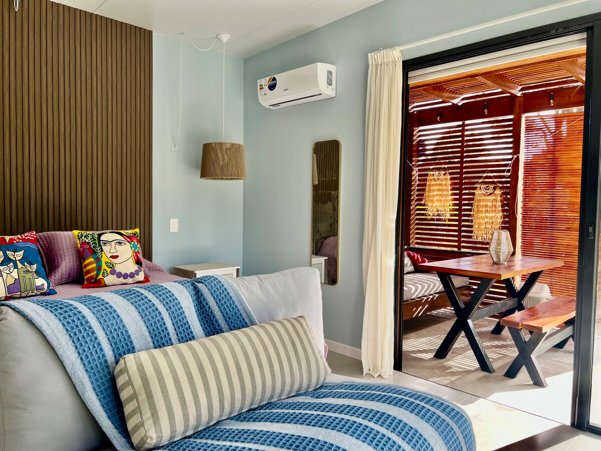 享受我們舒適的海濱套房的寧靜與舒適。 這個獨立的寶石有廚房、露臺和私人浴室,非常適合兩人度假。享受完全的隱私,擁有自己的入口和獨家設施。我們提供一個完整、現代且獨立於主屋的度假勝地,距離海灘僅幾步之遙。