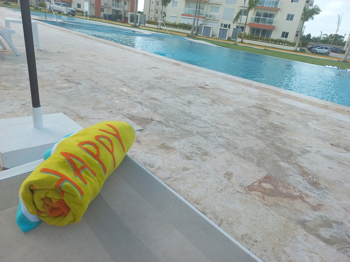 Welcome to your tropical getaway in Punta Cana! Located in a gated community, this charming apartment offers a unique private balcony, gym, a golf course, multiple swimming pools, and an artificial beach with bars and restaurants. You're just a short drive from local beaches and minutes away from supermarkets, downtown Punta Cana, and restaurants. The airport is a quick 20-minute drive. Enjoy high-speed WiFi, Netflix, and Board Games. ✅We do NOT charge an extra fee for electricity usage :)
