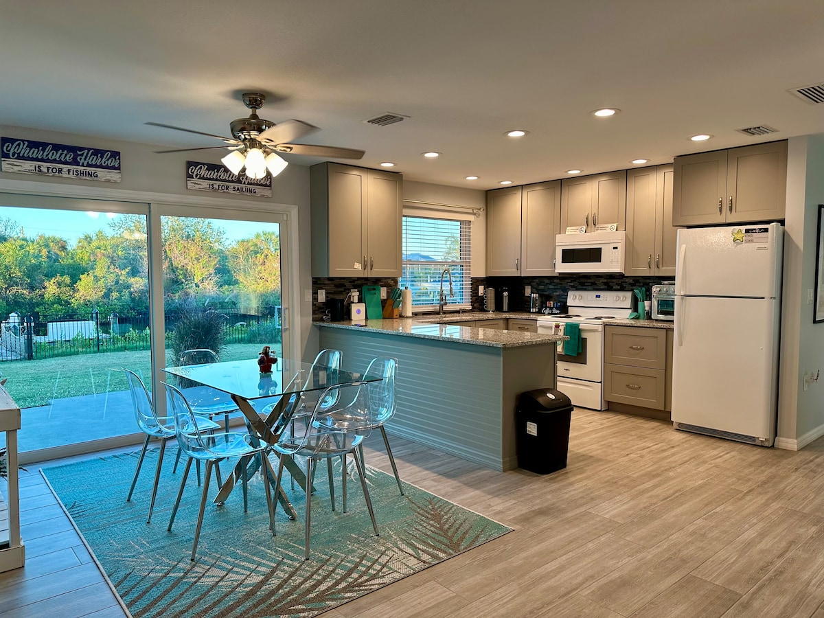 Whatever the reason for your visit, you are home with us. The golf course is full of wildlife, making your morning coffee a peaceful respite as the day begins. You can enjoy spreading out in the home, enjoying TVs in each room, pool upstairs or board games in the living room. With a short 10 minute drive to downtown you can plan to catch a stunning sunset at Charlotte Bay or enjoy public parks with the little ones. After a long day, relax in the heated pool and grill on the lanai.