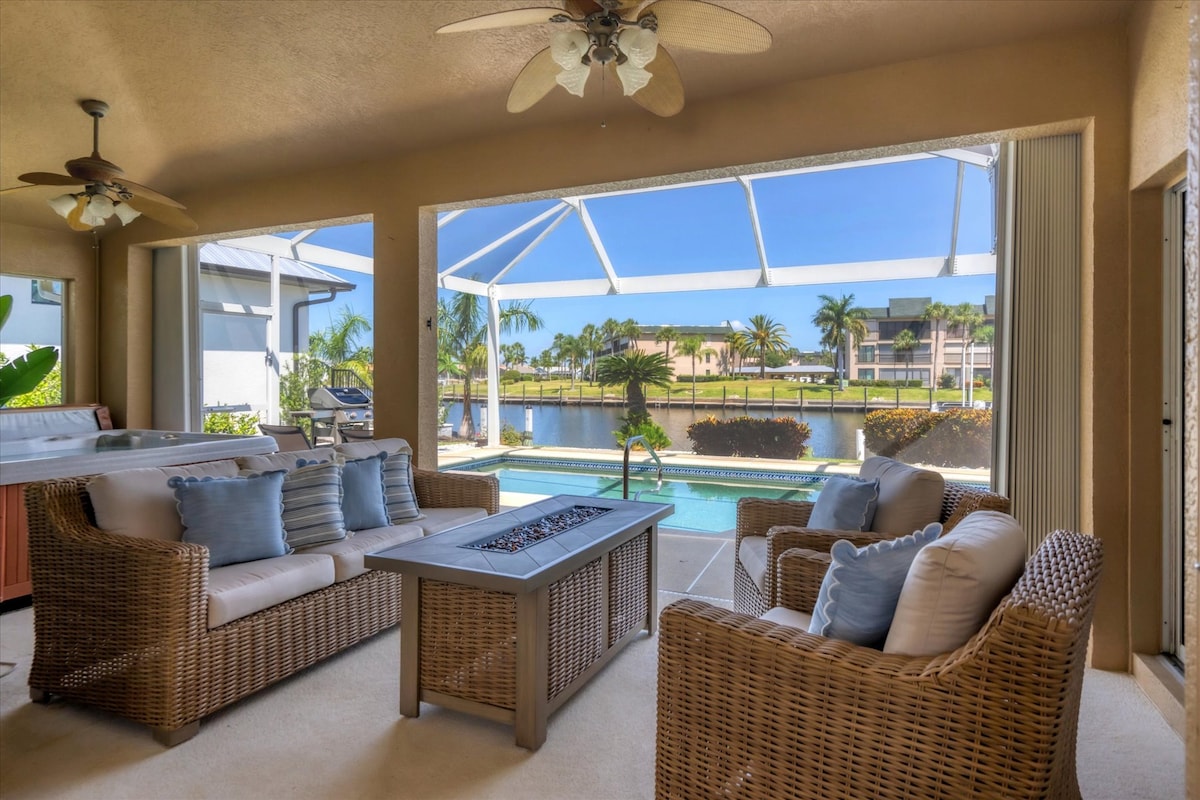 CAPE CORAL 最好的海濱之一!步行即可抵達海邊。 這間2,500多平方英尺的房源,從所有主要起居區域以及主套房都可以欣賞到壯麗的日落和西南水景。配有LED彩色照明的溫水泳池、內建水療中心、泳池浴缸、全套洗衣設施、Lanai、壁爐、每間臥室都有Wi-Fi和電視、私人碼頭。可租用RPM租賃的升降船。 大型2車車庫,配有5輛自行車、海灘車和冰箱。