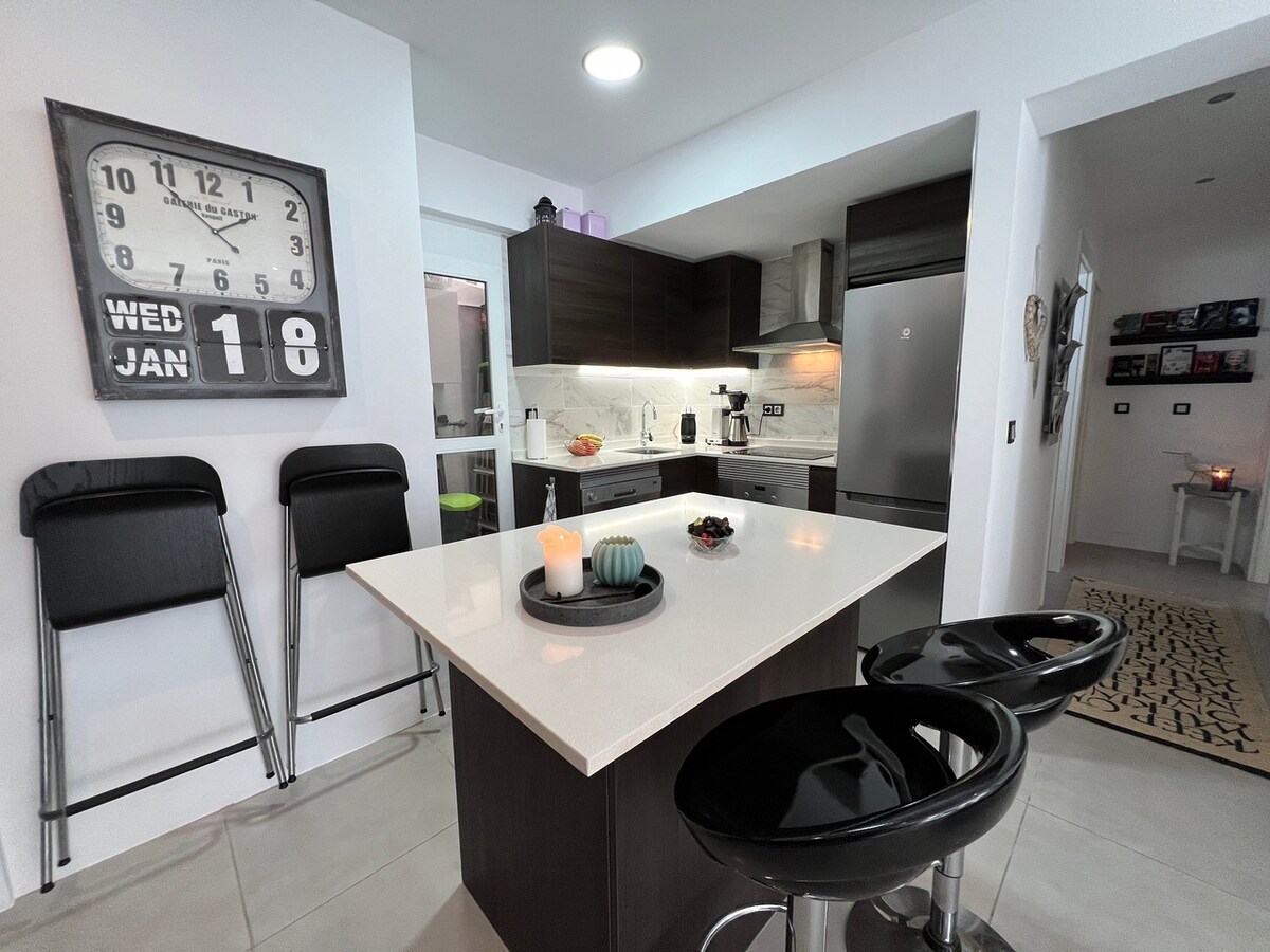 Completely renovated seaside apartment with 2 bedrooms, 2 bathrooms and a nice balcony with a dining corner and sun loungers. Just a few meters from the sandy beach of Punta Prima, the apartment is located in a very quiet and relaxing location, next to a promenade and a coastal path that connects it to the neighboring city of Torrevieja. It is very close to many quality restaurants and shopping areas, just a few minutes walk away.