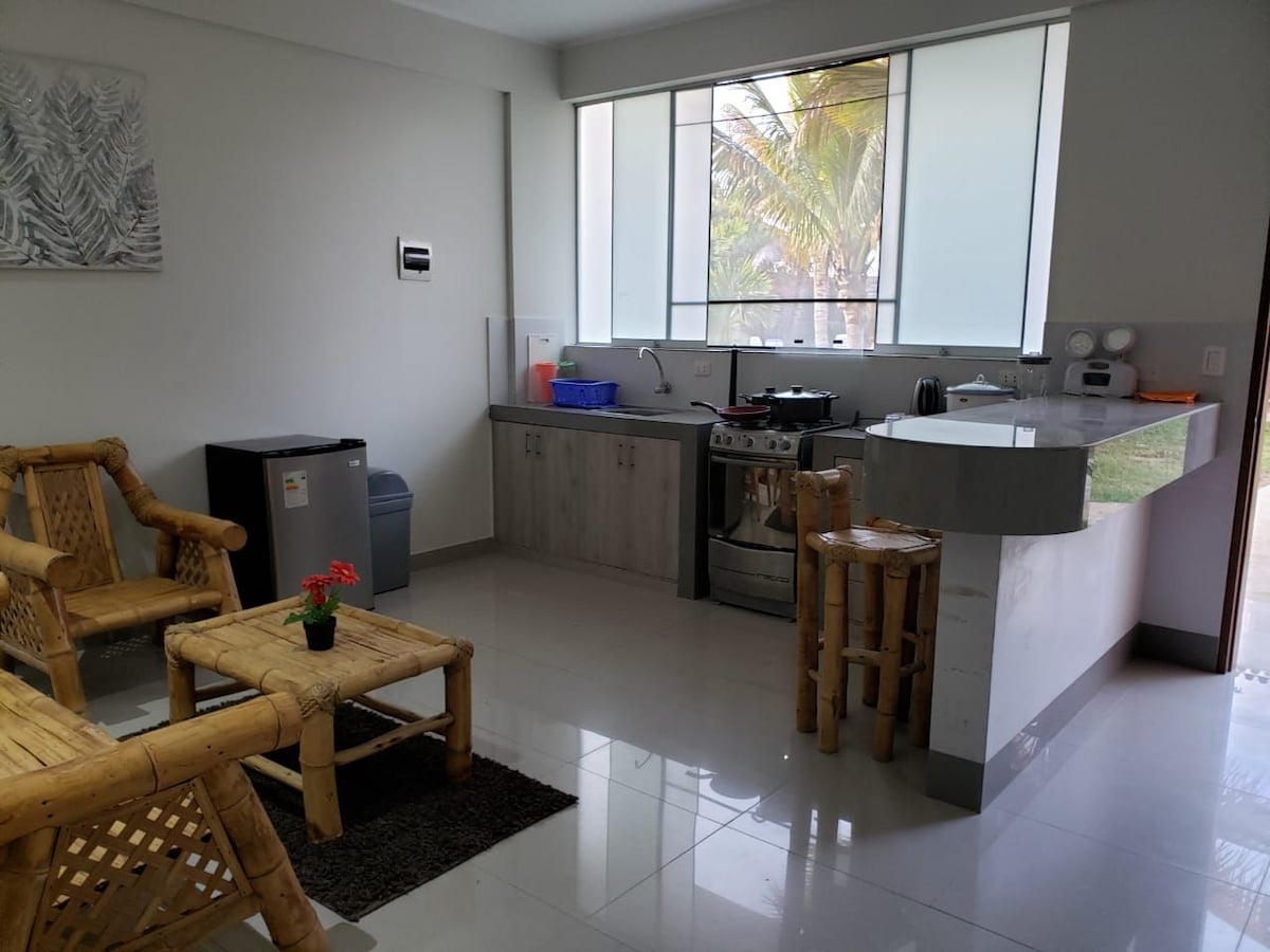 ✨ 這不僅僅是一個住宿,而是真正的度假勝地。 無論您是家庭、一對尋找浪漫的夫婦、一小群朋友,還是一個尋找靈感的數位遊牧,這都是您的天堂。 Vichayito 🌴 的海灘小屋,獨家海灘,距離 Máncora 15 分鐘 🏖️ 海景/日落景觀 🏊♂️ 小型私人泳池 |❄️空調 |💻快速 Starlink WiFi 🍳 戶外廚房 + 烤肉 | 私人花園 🛏️ 3 張床 + 沙發床 | 熱水 | 洗衣機 | 📺 DirecTV | 太陽能 🧑🔧 專屬服務