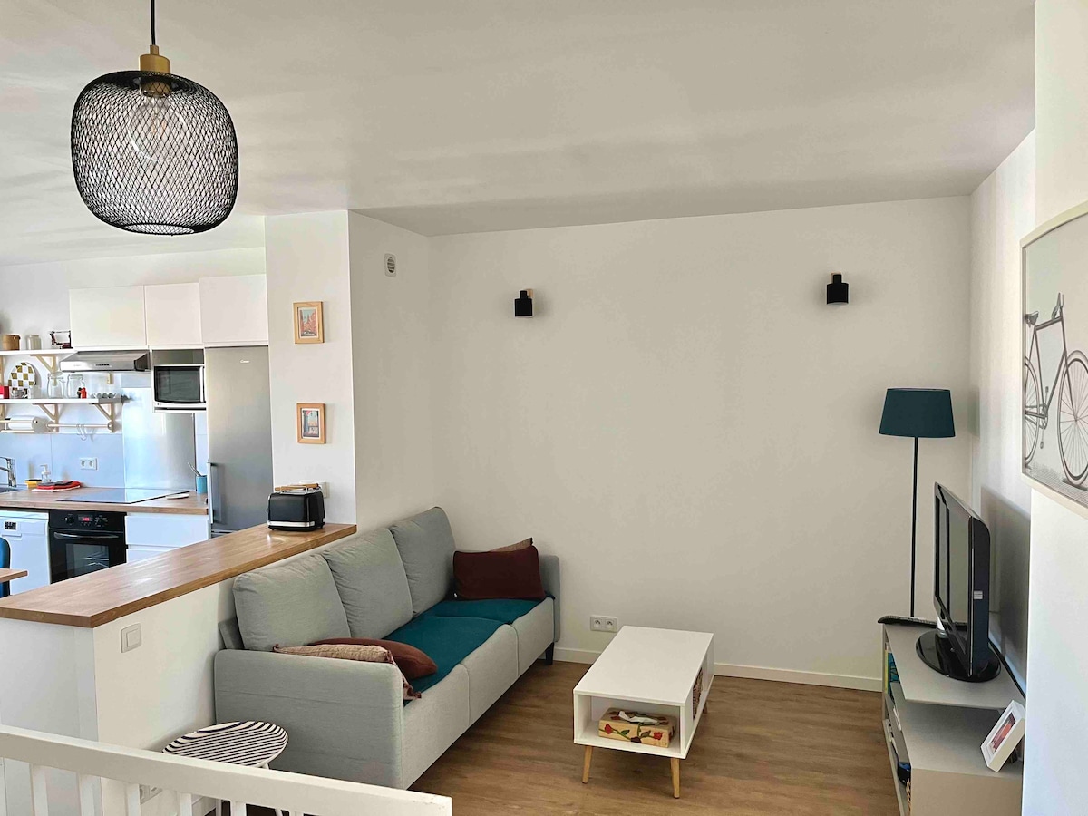 🌞位於Purpan的安靜明亮公寓,就在Ancely電車站旁。 📍 附近: - Purpan、Pierre Paul Riquet 醫院 🏥 - 布拉尼亞克 AIRBUS、ATR ✈️ - 聖馬丁杜圖什 它有冷氣、露臺和私人停車位。 非常適合情侶或商務差旅入住。💼 餐廳🍽️、酒吧、商店就在附近🛍️ 📲可使用數位歡迎手冊