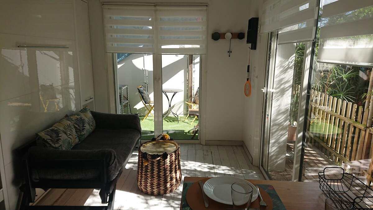 位於我家的花園內,您可以通過花園進入這棟19平方米的漂亮房子,綠色環境中,設有私人家具露臺,陽光明媚,享有完全的隱私。 這只是一個房間,小巧、舒適、舒適和實用,一切都在那裡! 墨菲牀、帶步入式淋浴間和馬桶的浴室。 可逆空調。所有窗戶都有滾動百葉窗。 在冰箱和櫥櫃中,您可以找到早餐和基本產品