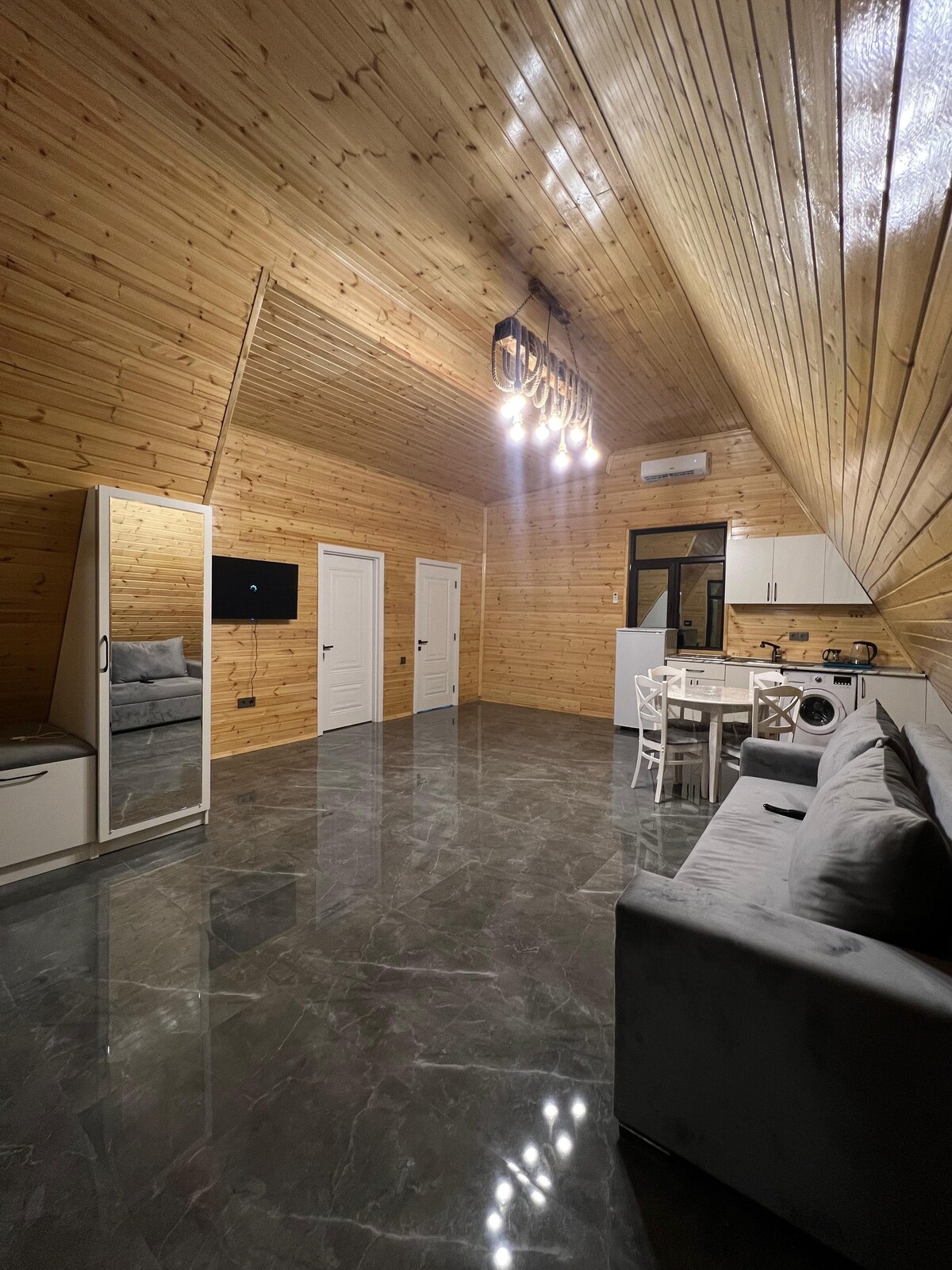 位於Chaigovoshan村(Ismailly)的獨家北歐房源,是阿塞拜疆適合想要逃離城市喧囂的人的獨特去處。 全景窗戶可俯瞰山脈和河流,絕對的寧靜和新鮮空氣創造了隱私和放鬆的氛圍。 房子內:廚房-客廳、2間配有雙人床的臥室、地暖、全新翻修。 在領土上:露臺、涼亭、烤架、鞦韆、火堆。 對於熱愛大自然和舒適的人來說,這是一個理想的選擇。