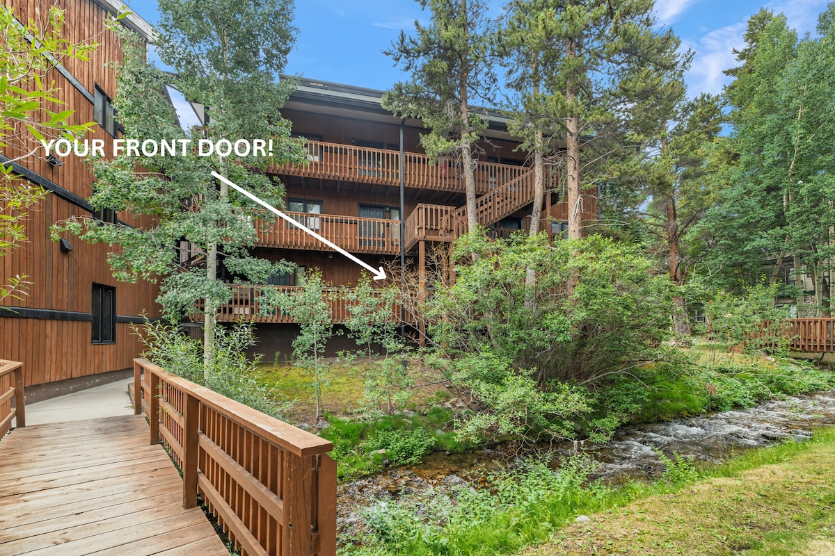 這間舒適的單間公寓地理位置完美。您可以從前門走到Snowflake Lift ,然後從4 O'Clock Run滑雪回家吃午餐或在一天結束時。步行不到10分鐘即可抵達Breck歷史悠久的主街,您可以在那裡找到無數的餐廳和商店。 在夏天,您會聽到離您家門口幾步之遙的冒泡小溪,而通往美麗的鋸木水庫步道的步道起點就在雪花電梯(Snowflake Lift)幾步之遙。