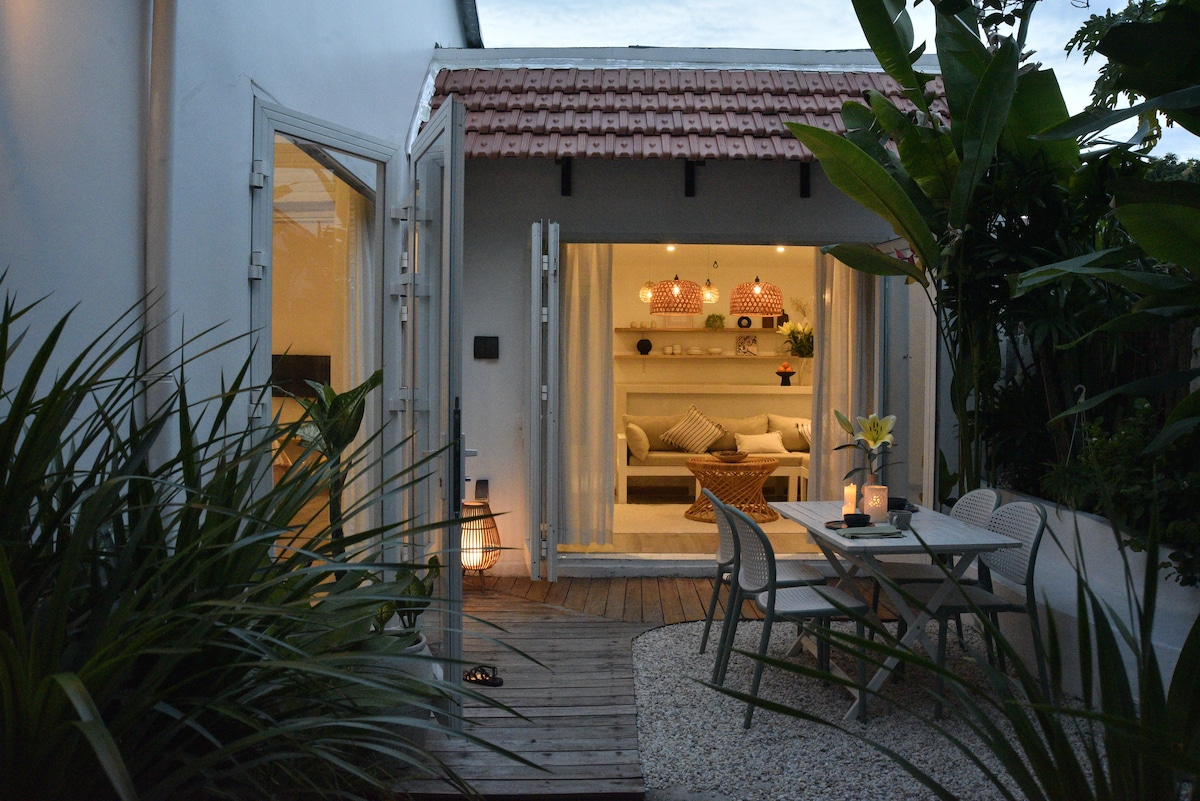Breakfast included This is your PRIVATE VILLA of 150 square meter included a pool, a garden surrounded by a fence to create an absolute privacy and romantic space, invisible from outside. Unique & luxury, romance with full service, room service . Healthy breakfast, daily cleaning, fully equipped with a kitchen, a kitchenette, bathtub, TV, WIFI, essentials & free bikes. Perfectly located right between the ancient town and the beach. Our place is a loved address to travelers.