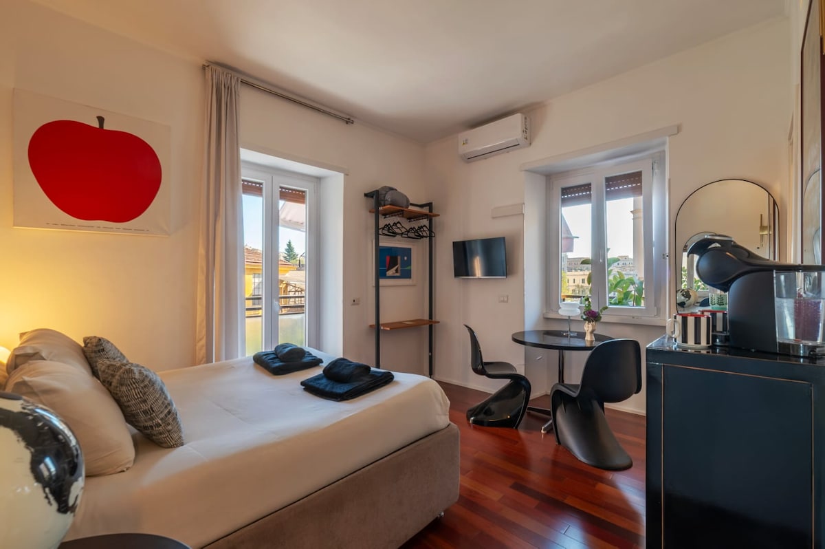 這間公寓旨在為情侶、家庭或朋友提供舒適的住宿。 公寓位於Esquilino一棟安靜的歷史建築內,靠近餐廳、酒吧、麵包店、超市和專業商店。 從Termini火車站(步行10分鐘)或Vittorio Emanuele地鐵站(步行2分鐘)可輕鬆抵達,並可輕鬆前往大多數歷史景點。