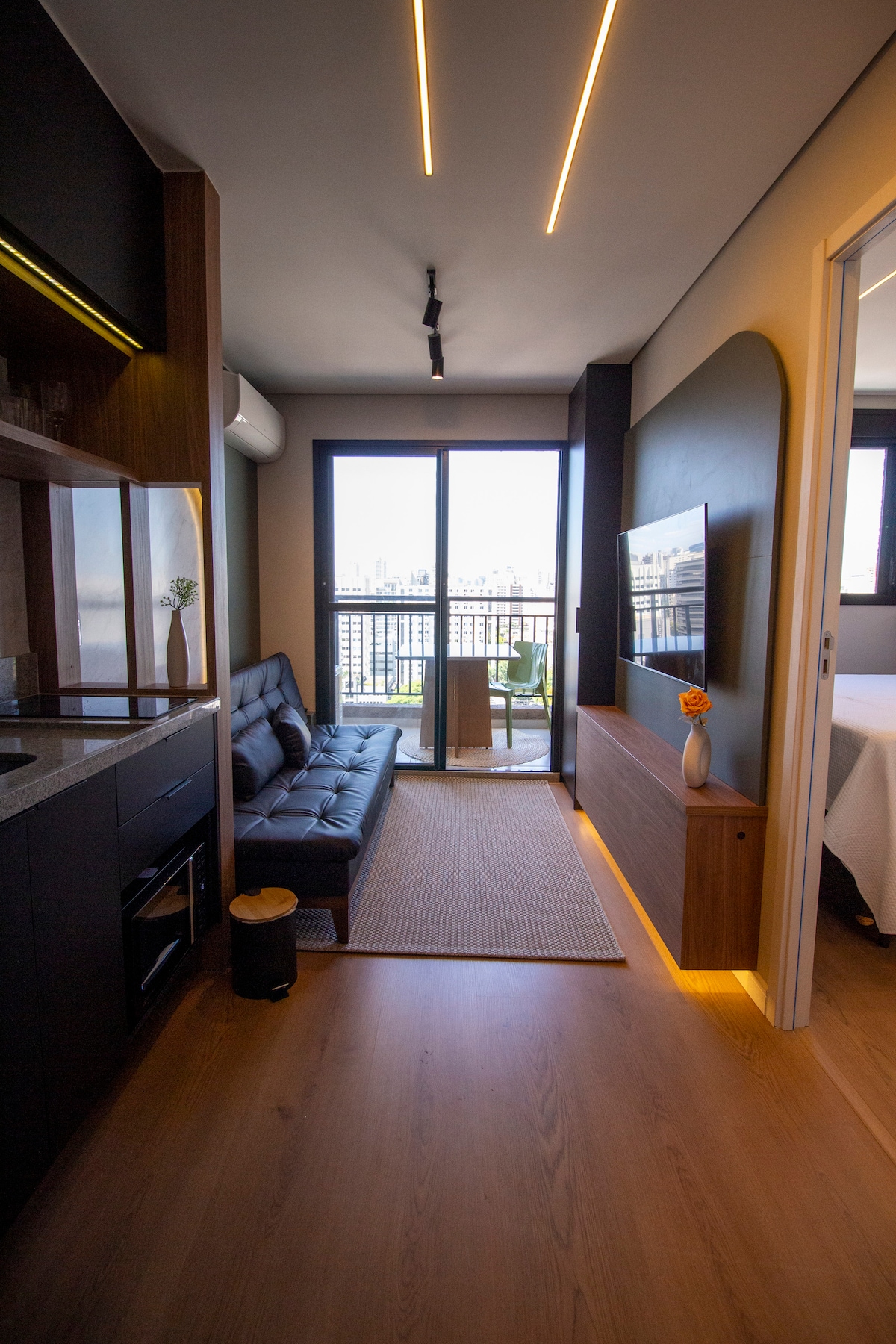 該單間公寓位於市中心最高建築的31樓,擁有現代化和溫馨的設計,以及令人印象深刻的城市景觀。 從窗戶可以欣賞到安漢加巴烏谷(Anhangabaú Valley)、歷史中心、Av. 保利斯塔:聖保羅最美麗的景觀之一。 這是SampaSky所在的建築物,步行即可抵達市中心的主要景點。 配有空調、55吋電視(可應用程式)、配備基本餐具的廚房、爐臺( 1口)、微波爐和迷你吧。