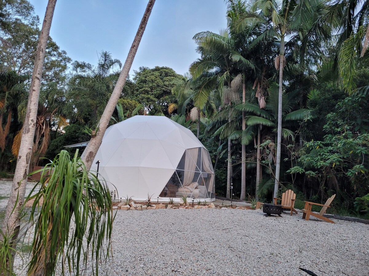 Escape to Tallaringa Luxury Camping - your own private glamping retreat in 2 luxury air conditioned domes set on a beautiful, peaceful property. Perfect for a couple or friends travelling together. You’ll enjoy your own space, an outdoor bath under the stars, cozy nights with a campfire and stunning views. Relax, unwind and experience something truly special. The property is bordered by cane fields and a creek. Our centre piece is a beautiful lake with a bridge to an island with palm trees.