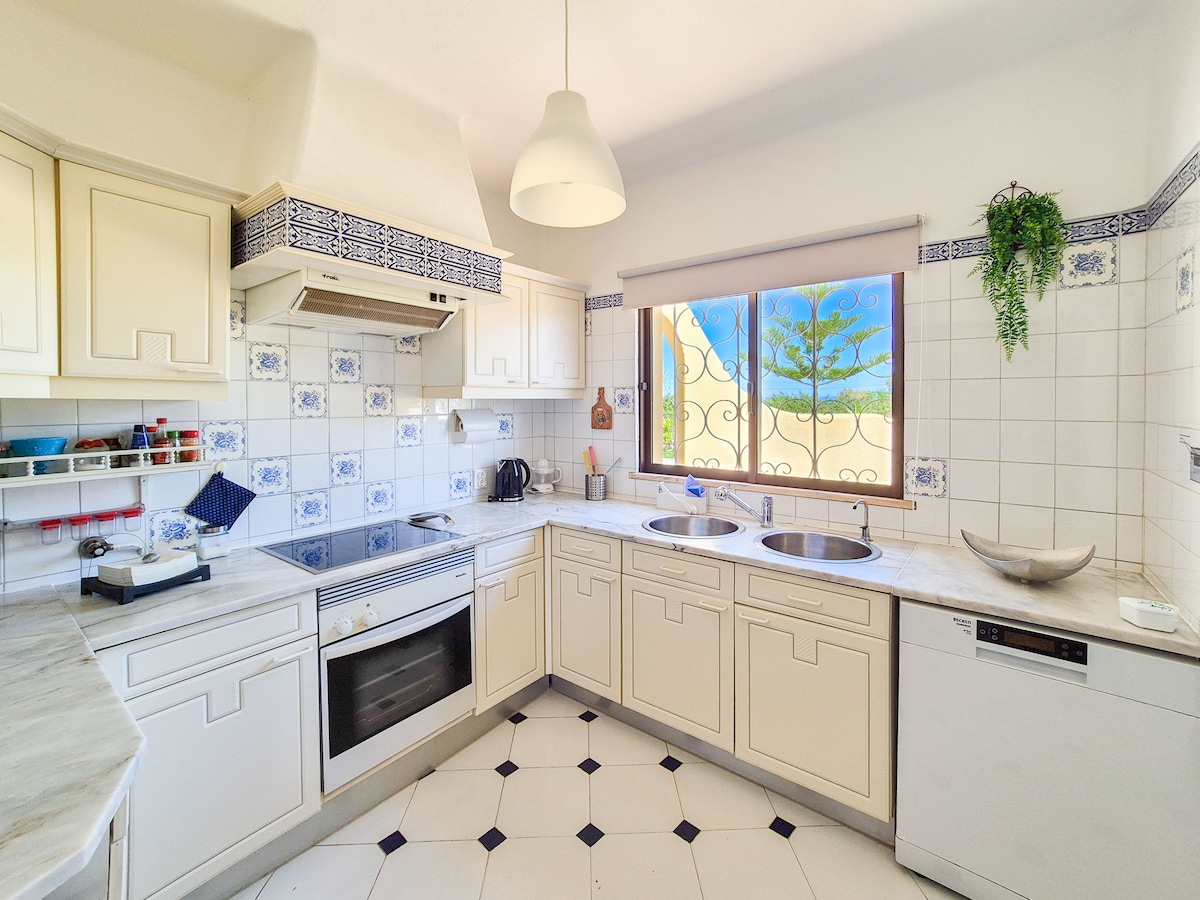 很棒的鄉村別墅,距離Armação de Pêra海灘兩分鐘路程。非常私密安靜。三間臥室都有空調。烤肉或烤魚。有一個大型游泳池,在放鬆的環境中有很多樹木和花卉。您可以享受阿爾加維的陽光。