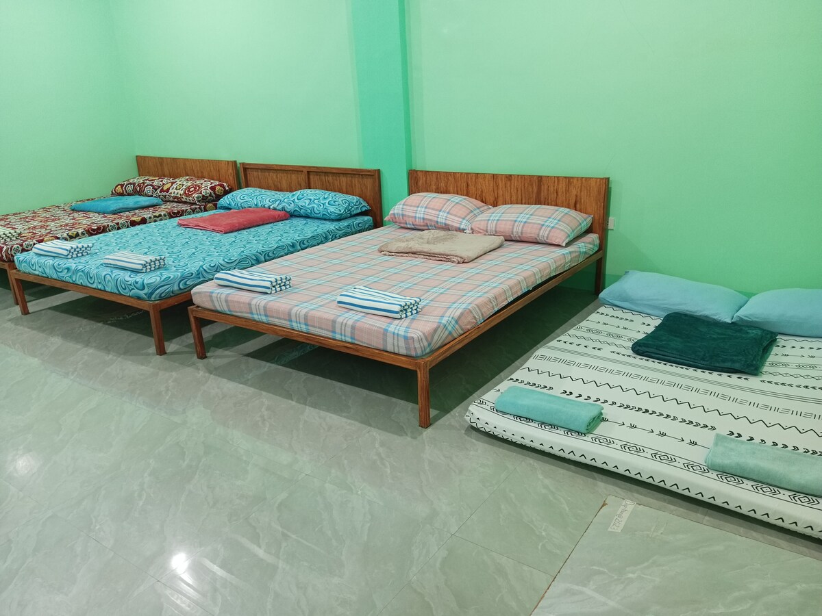 Located @ the centre city of Lucena Room w/ 1 double deck has 3 beds =1 queen size and 2 single bed,room was big enough for 4pax,easy access to restaurant,malls ,hospital and schools... Safety place was safe and peaceful .
