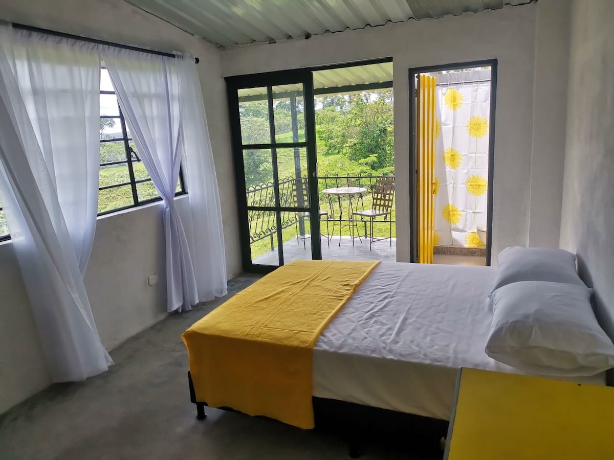 Un espacio acogedor, rodeado de naturaleza, ideal para el descanso. Su excelente ubicación permite acceso rápido a los principales atractivos turísticos de la región. Se encuentra a solo 10 minutos de Armenia y Circasia y 30 minutos de Salento y Filandia. Además, en menos de una hora puedes explorar diversos parques temáticos. Dispone de una amplia habitación con tres camas y un nicho, una sala con sofá cama, una cocina equipada con lo esencial, televisión, WiFi y dos baños con agua caliente.