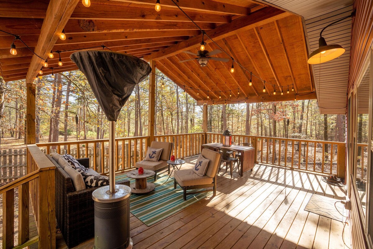 Crockett 's escape樹屋是一個驚人的住宿體驗,可欣賞美麗的Greers Ferry Lake的180度景觀。這個私人林地度假勝地可供兩位成人入住,配有兩人按摩浴缸,您可以俯瞰整個湖泊。樹屋配有全套小廚房,配有爐台、烤箱、微波爐、用餐區域、壁爐和65吋智慧電視。L型沙發與躺椅變成了床鋪。私人包覆式露台非常大,景觀非常好