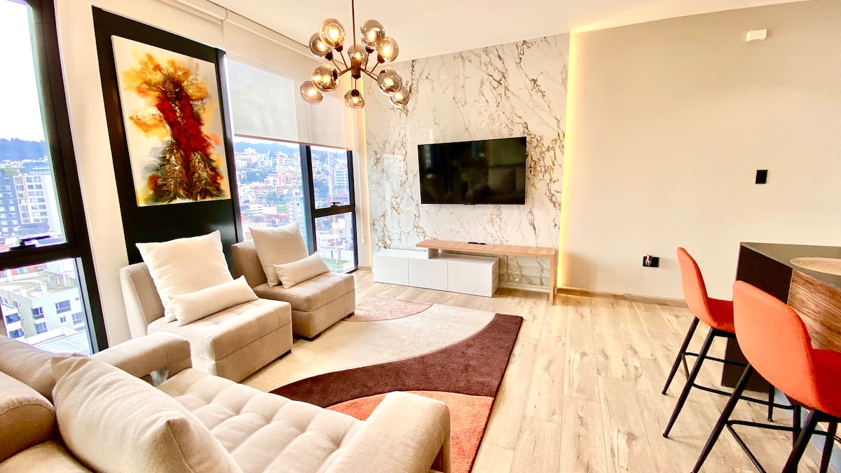 時尚現代套房,位於基多最好的地點之一。前衛街區,靠近歷史中心,距離熱門旅遊區、餐廳僅幾分鐘路程,但位於城市安靜的環境中,非常適合在充滿樂趣的觀光和欣賞美麗的厄瓜多爾文化之後放鬆身心。 套房位於基多最好的地方。Lugar vanguardista, en la ciudad moderna, cerca del centro histórico, a minutos de la zonas turísticas, restaurantes.
