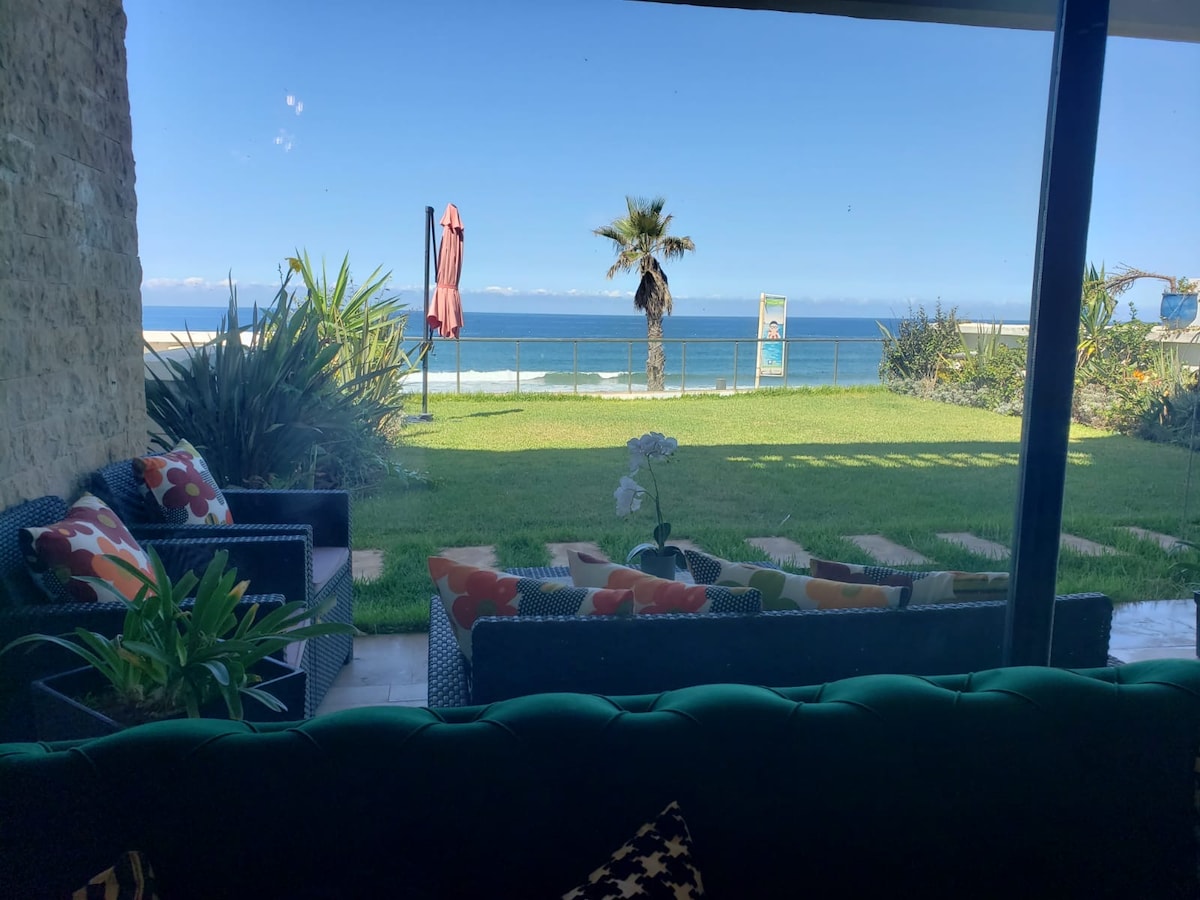Très bel appartement, classé parmi les 3 meilleurs appart du site de la plage des nations comportant 2 ch+ salon pied dans l’eau avec jardin privatif dont 2 grandes terrasses, bien meublé, une vue sur mer à couper le souffle, accès direct à la piscine, la corniche et la plage à 1 min place garage privé résidence hautement sécurisée localisée à une dizaine de km de rabat et kenitra. C’est l’endroit parfait pour vous et votre famille afin de bien profiter de vos vacances+transport en option