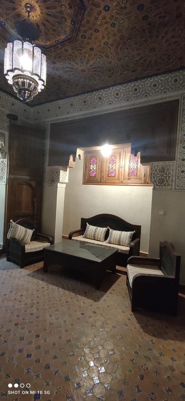 這座美麗的Riad將在Meknes的麥地那歡迎您,距離El Hedime廣場幾分鐘路程。 典型的房屋,由摩洛哥工匠完全修復,房間以傳統的方式裝飾,您可以在這裡找到所有想要的舒適。 摩洛哥早餐,配有mellouis、harcha、橄欖、橄欖油、蜂蜜...您可以在兩個休息室或露臺上享用,在那裡您可以欣賞著名的Bab Mansour門。