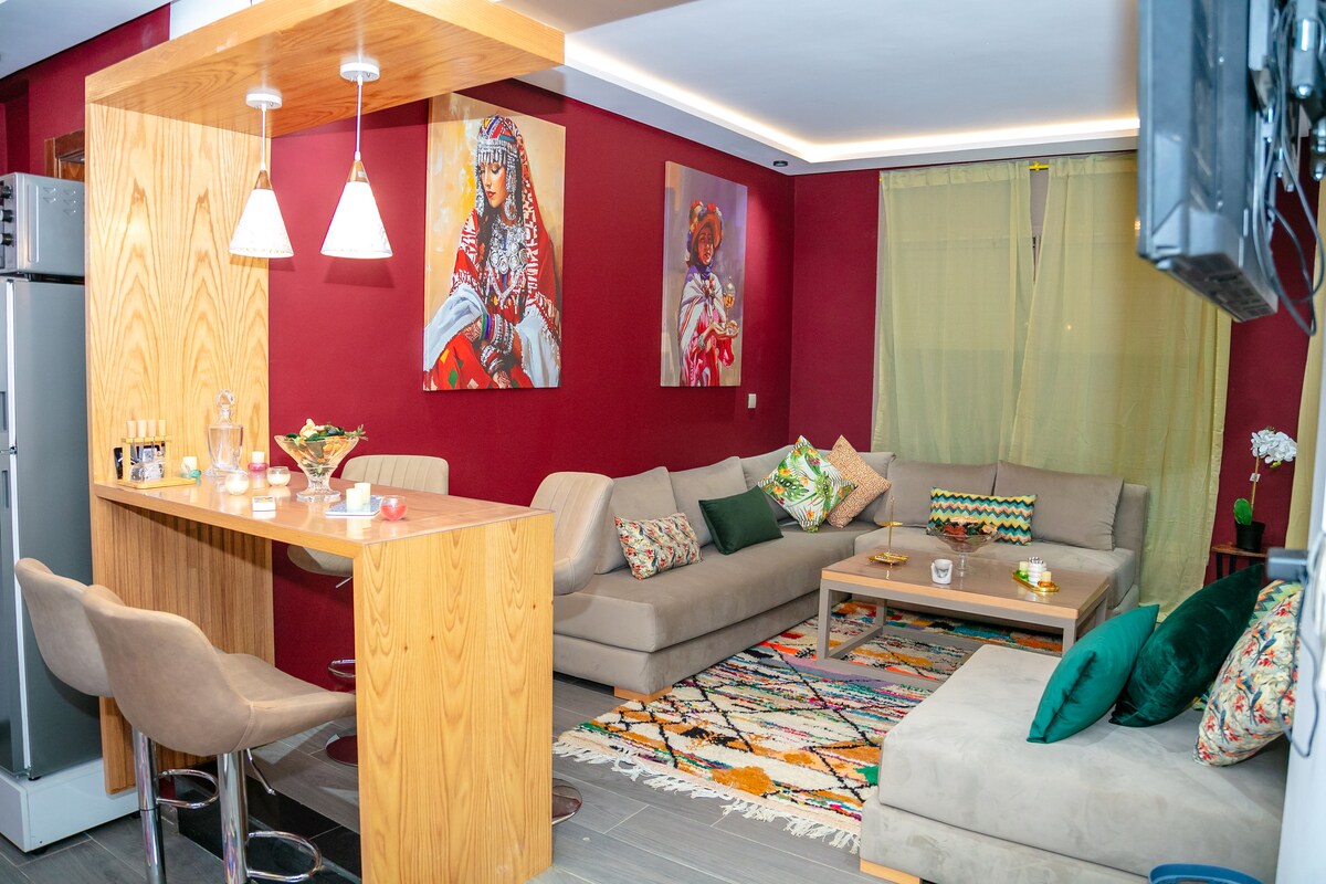 歡迎來到 Mehdia 享受這間豪華公寓,地理位置優越,步行 1 分鐘即可抵達海灘,非常適合與家人或朋友一起度假。 房源配備了所需的一切,位於安靜且安全的區域,靠近商店和餐廳,讓您住得舒適:現代化的廚房、寬敞的客廳、電視、Wi-Fi、餐具等。最多可容納 6 人,可提供額外的床墊(照片中看不到)