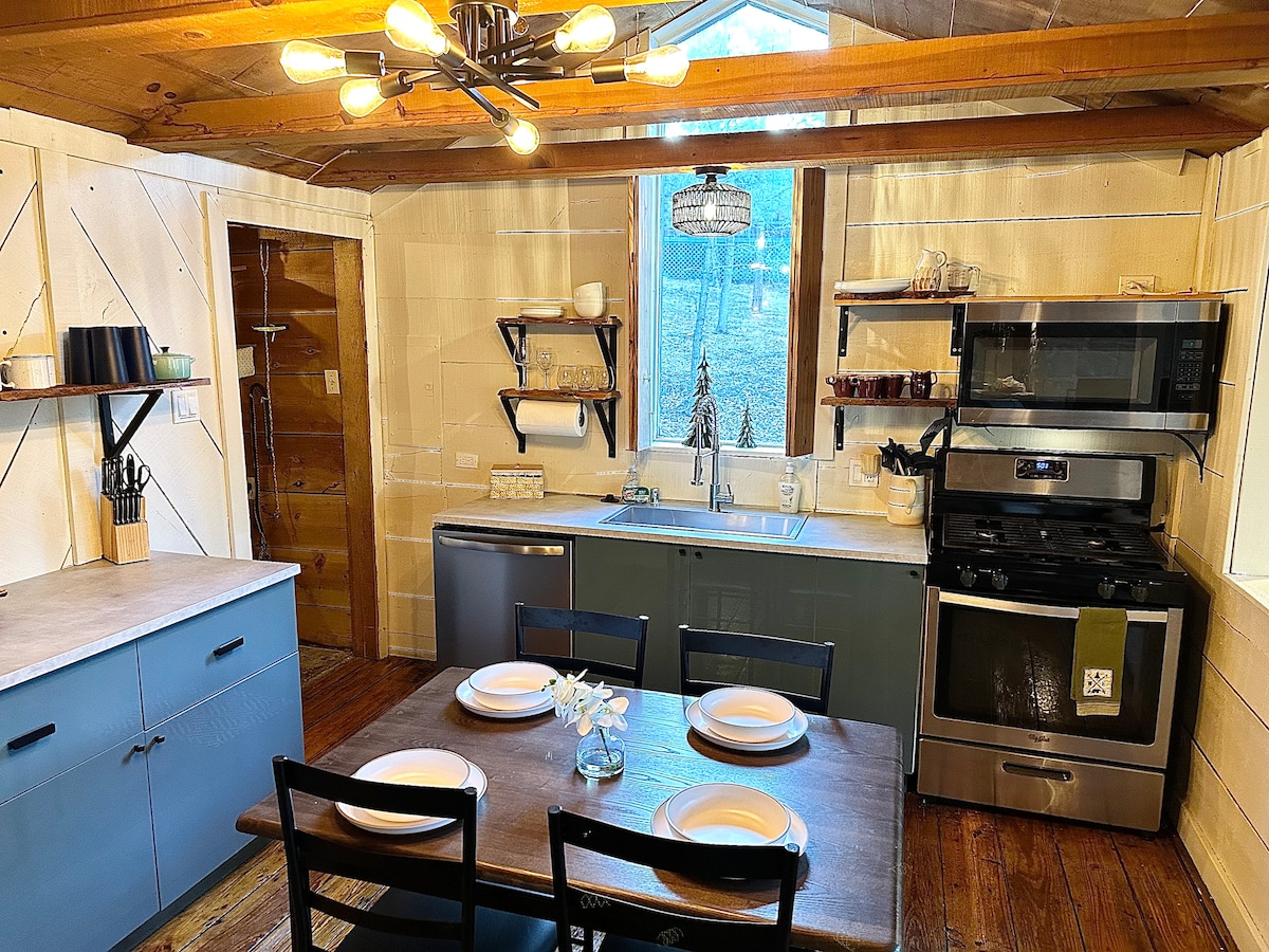 Welcome to the Grinning Grizzly Cabin! This rustic modern cabin creates a environment that makes you feel right at home. Where your only a few miles from great food, midtown and grindstone lake! This perfect cabin is where you can enjoy time with family and friends and make memories that last a lifetime. With amenities ranging from free wi-fi, parking in back and front, updated appliances, coffee bar, washer and dyer usage, fireplace and a large yard to enjoy outdoor activities!